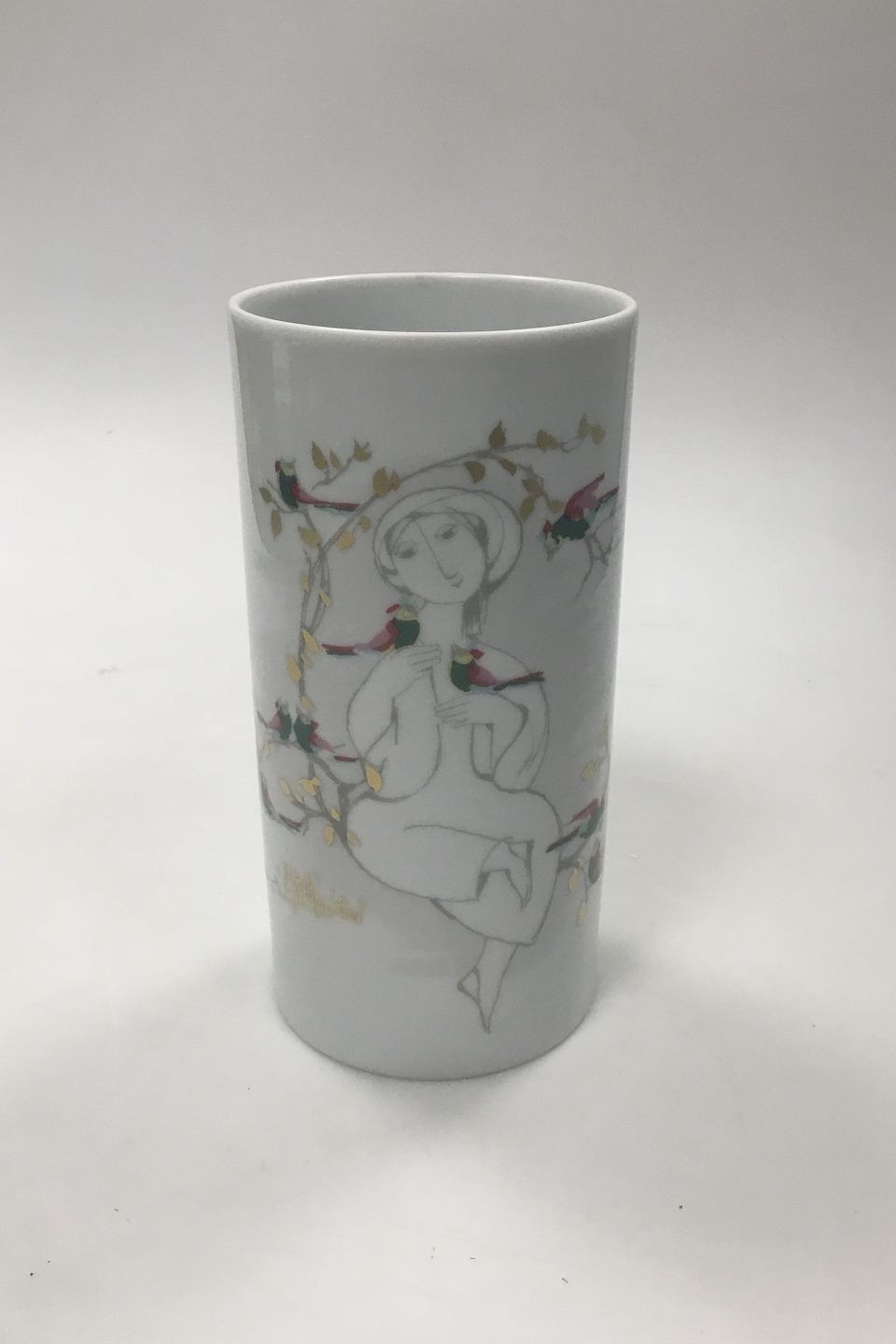 Bjorn Wiinblad for Rosenthal Cylindrical Vase with decoration with gold. Measures 18 cm / 8.09 in.