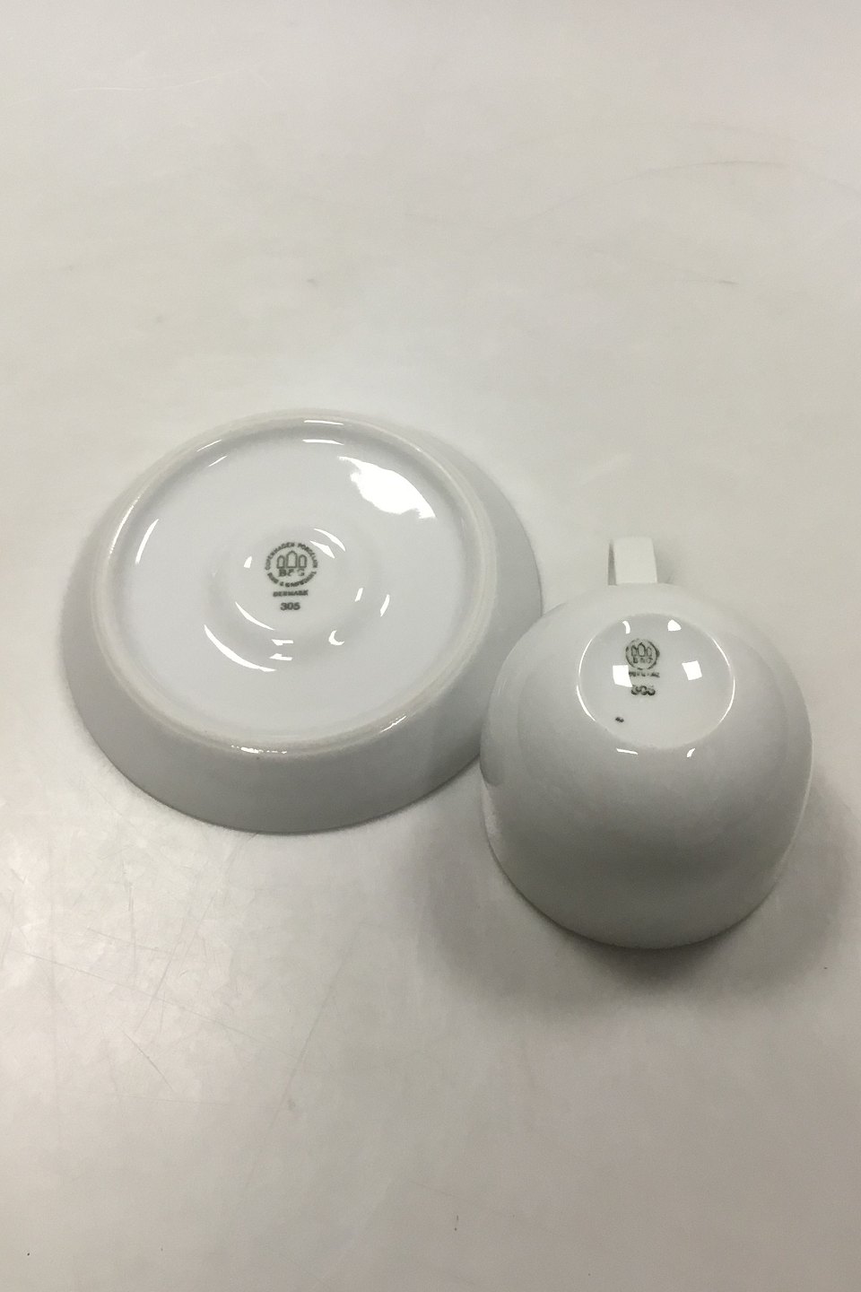 Bing & Grondahl Casablanca Coffee cup and Saucer No 305. Measures Cup: 6,5 cm x 8 cm dia. Saucer: 13,5 cm / Cup: 2.56 in. x 3.15 in. Saucer: 5.31 in.