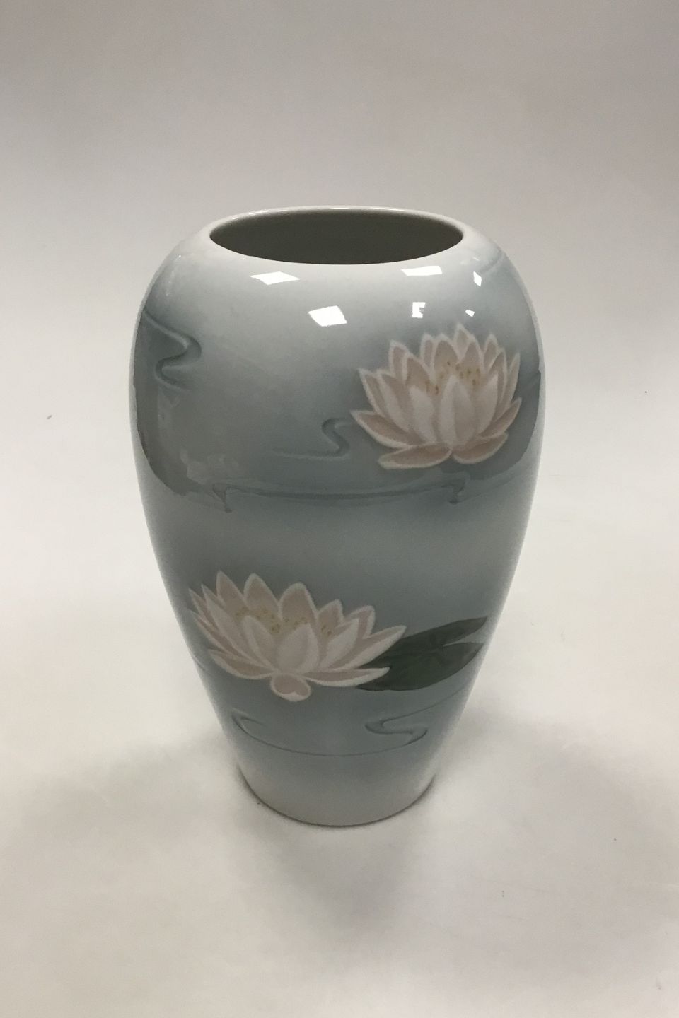 Bing and Grondahl Art Nouveau Vase decorated with water lillies No. 6436/1. Measures 22 cm / 8.66 in.