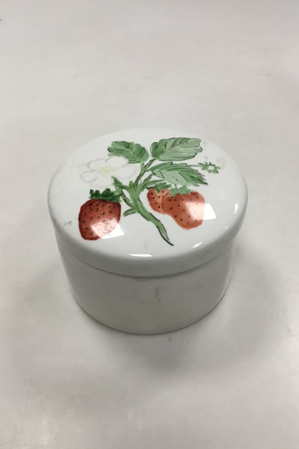 Bing & Grondahl Bonbonniere decorated with Strawberry. Measures 12 cm / 4.72 in.