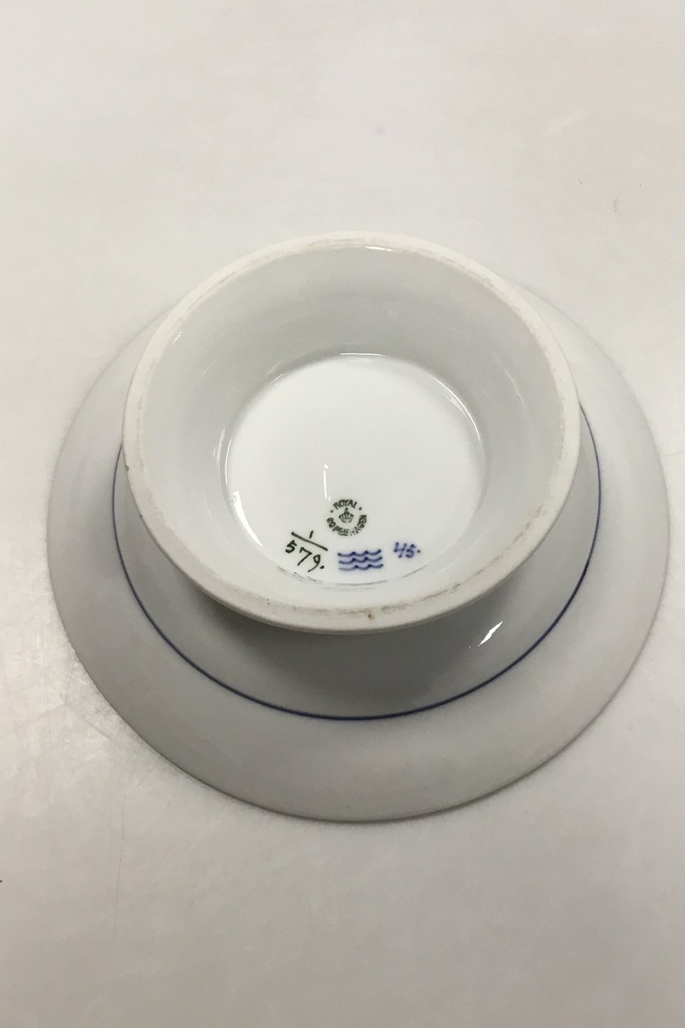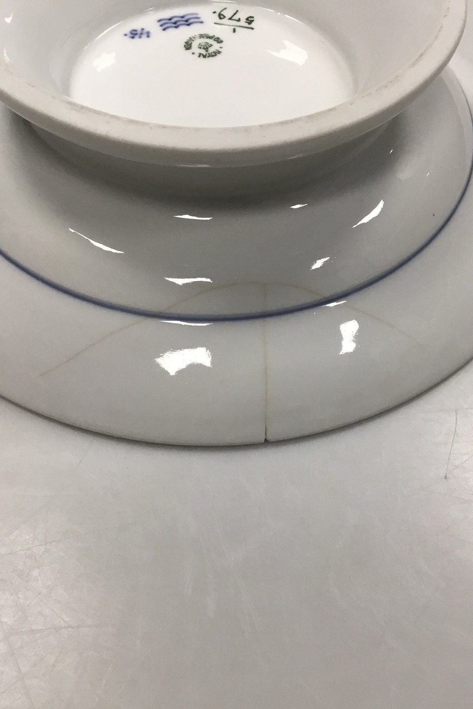 Royal Copenhagen Blue Fluted Half Lace Footed Bowl No 579. 1. Quality. Measures 6.8 cm x 22 cm dia. / 2.68 in. x 8.66 in. dia. With repair