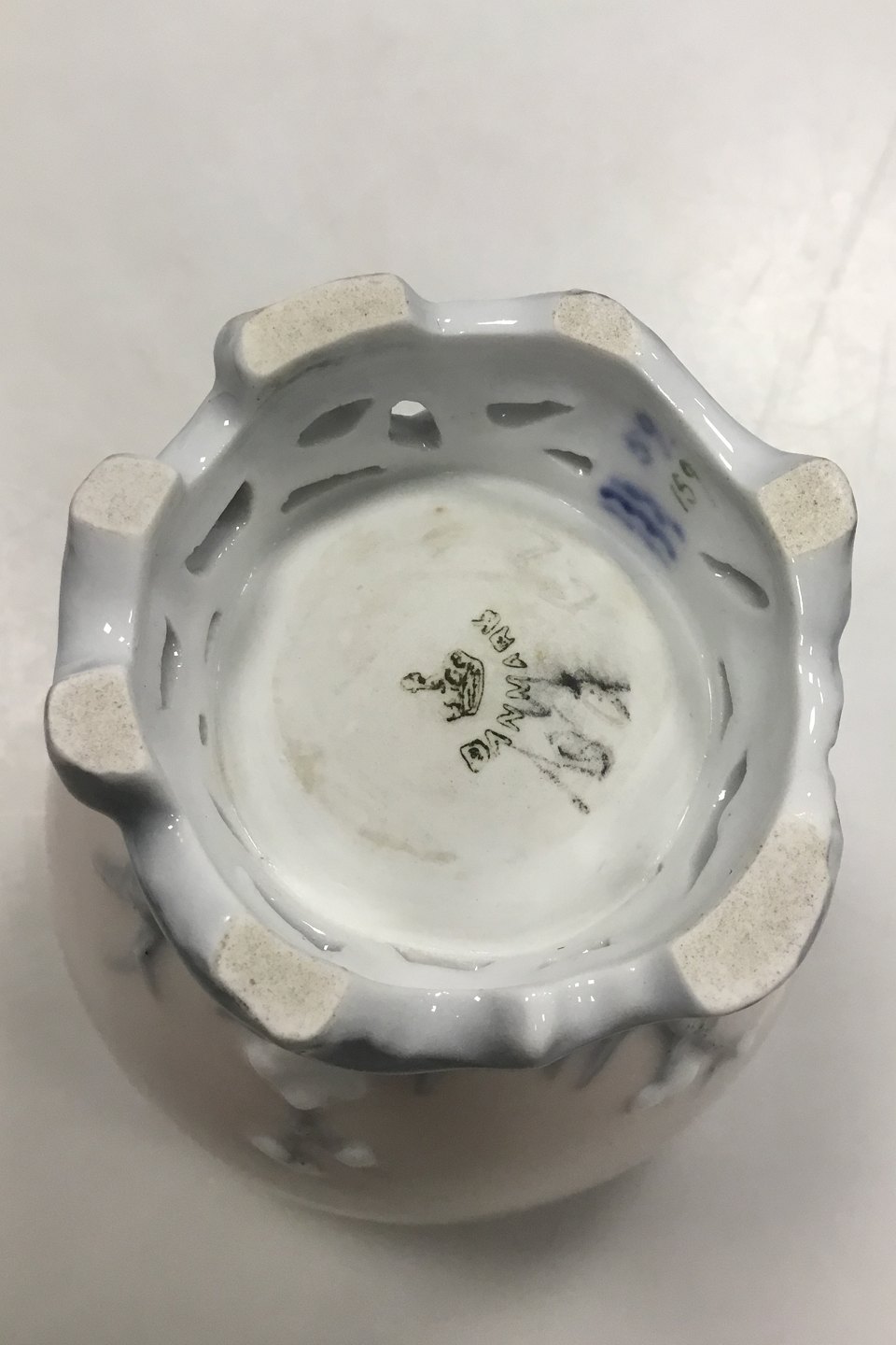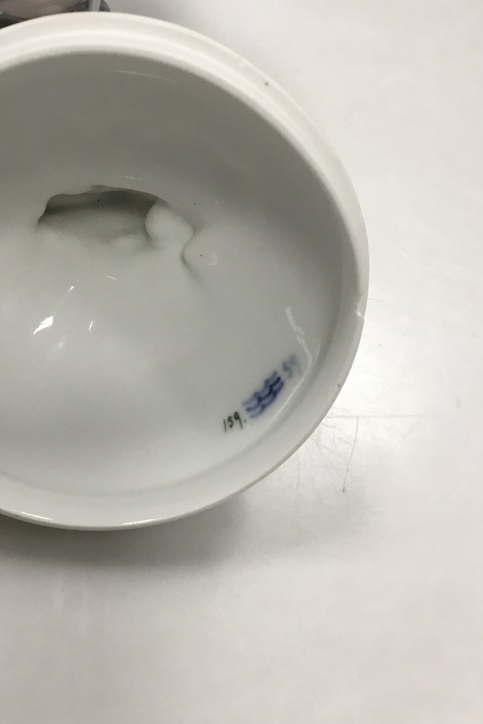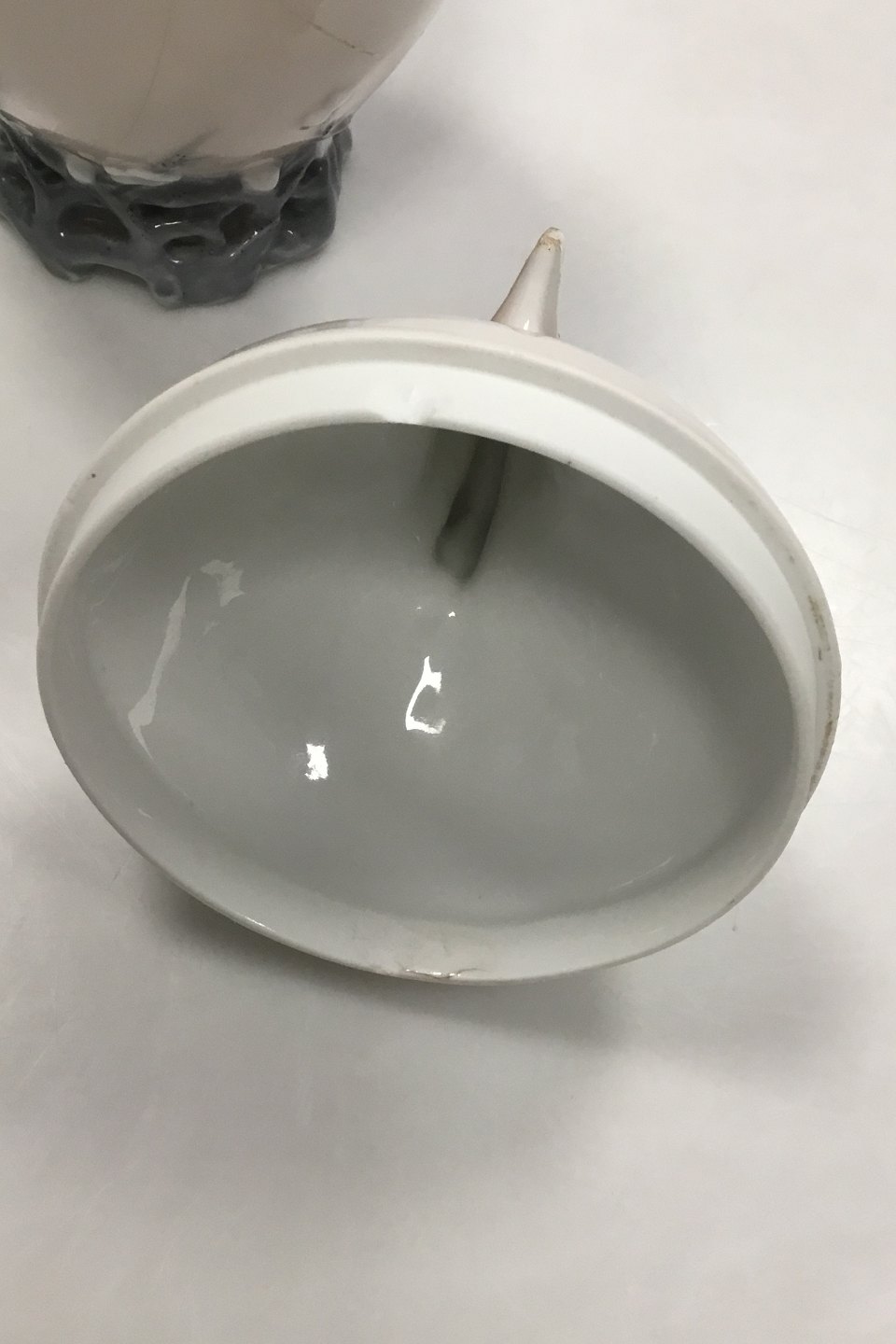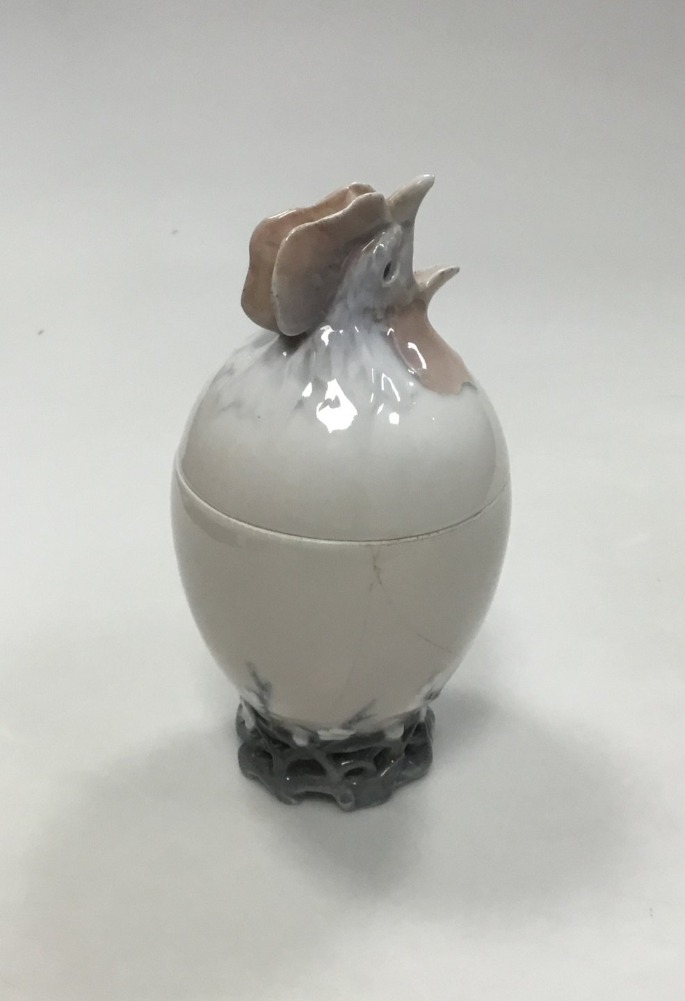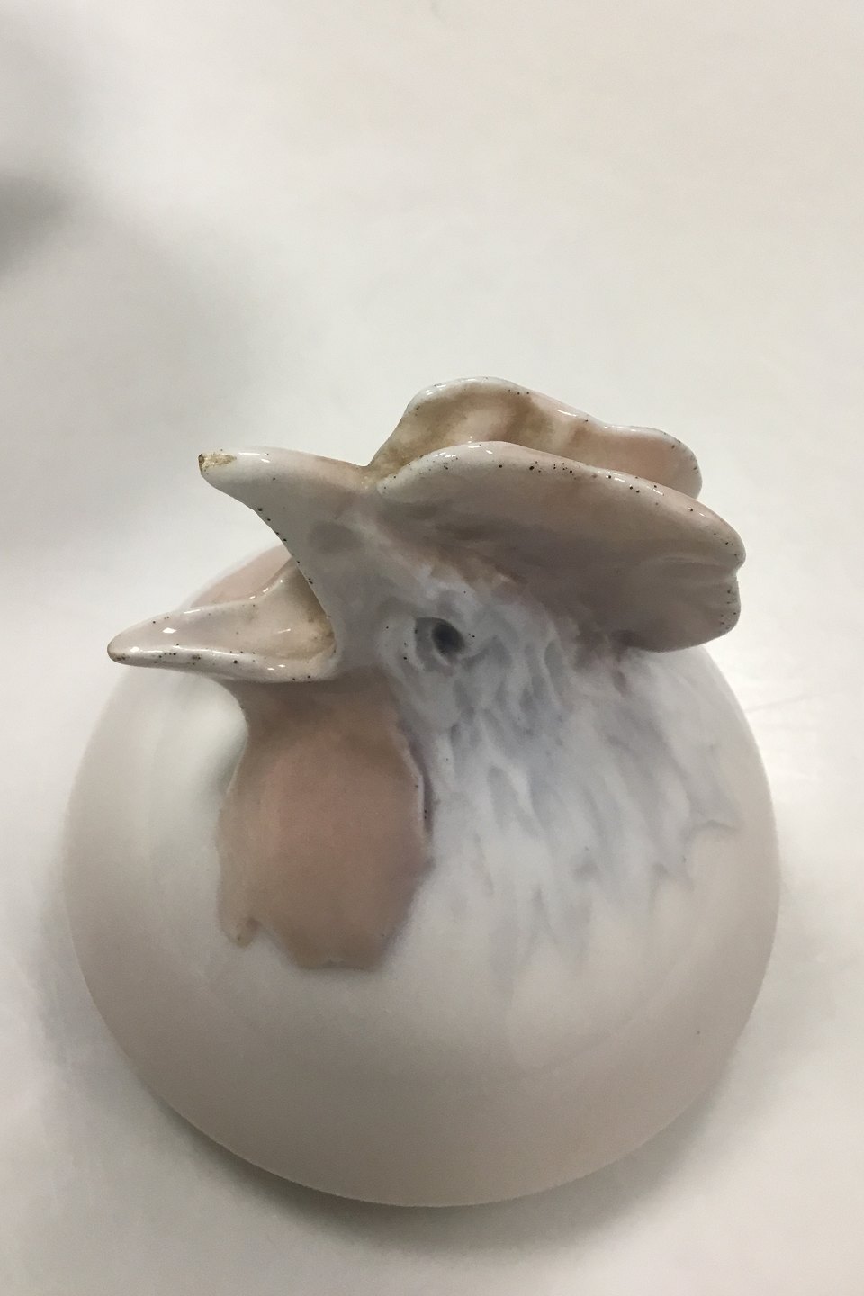 Royal Copenhagen Art Nouveau Bonbonniere Shaped as a Cock/Egg No 159. Measures 19 cm / 7.48 in. Over Part hvis Chip on edge. Underpart with cracks