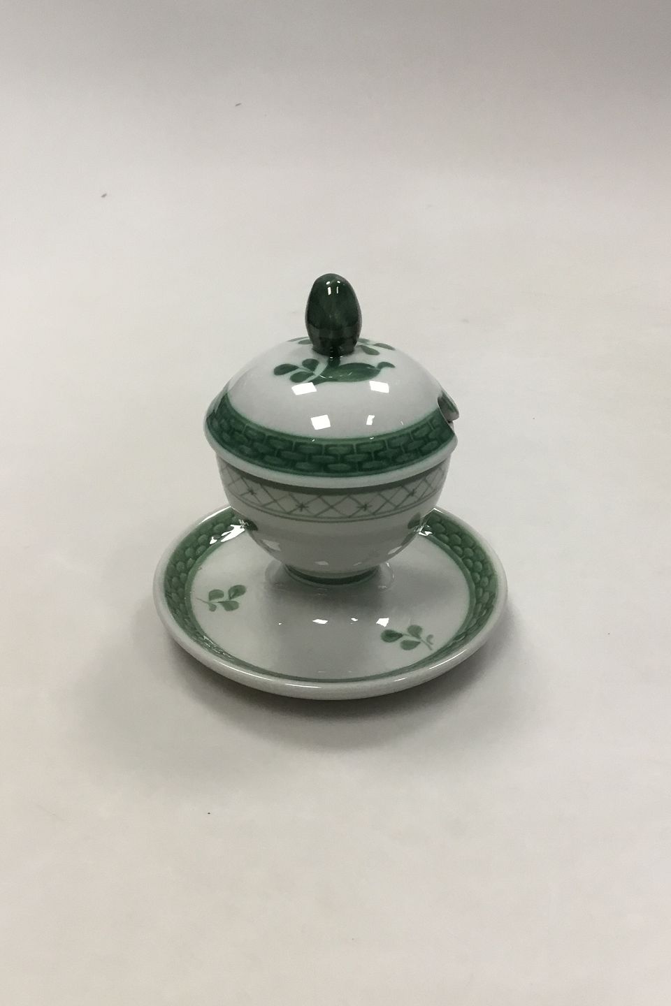 Royal Copenhagen Green Tranquebar Mustard Jar No 1010. Measures 10 cm / 3.94 in.