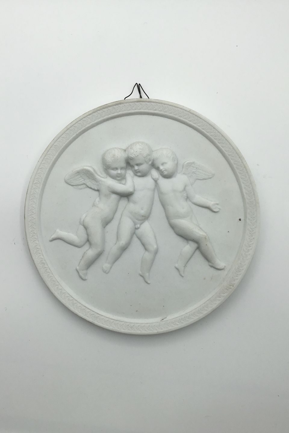 Royal Copenhagen Bisque Plate Three Flying Engels No 89. Copy from 1842 by Th. Mule after Thorvaldsens original from Rom 1805-07. Measures 14,5cm (5.70 inches).