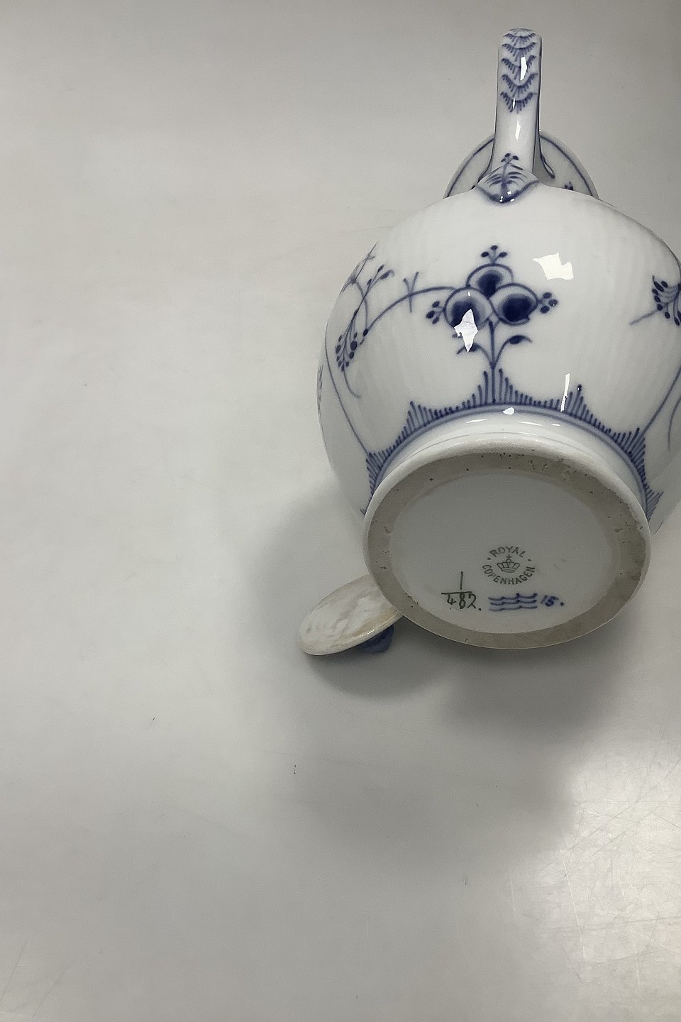 Royal Copehagen Blue Fluted Plain Chocolate Pitcher with Lid No 482. Measures 22 cm / 8.66 in.