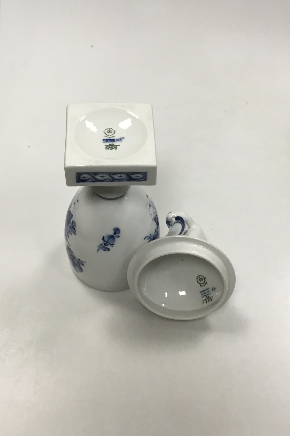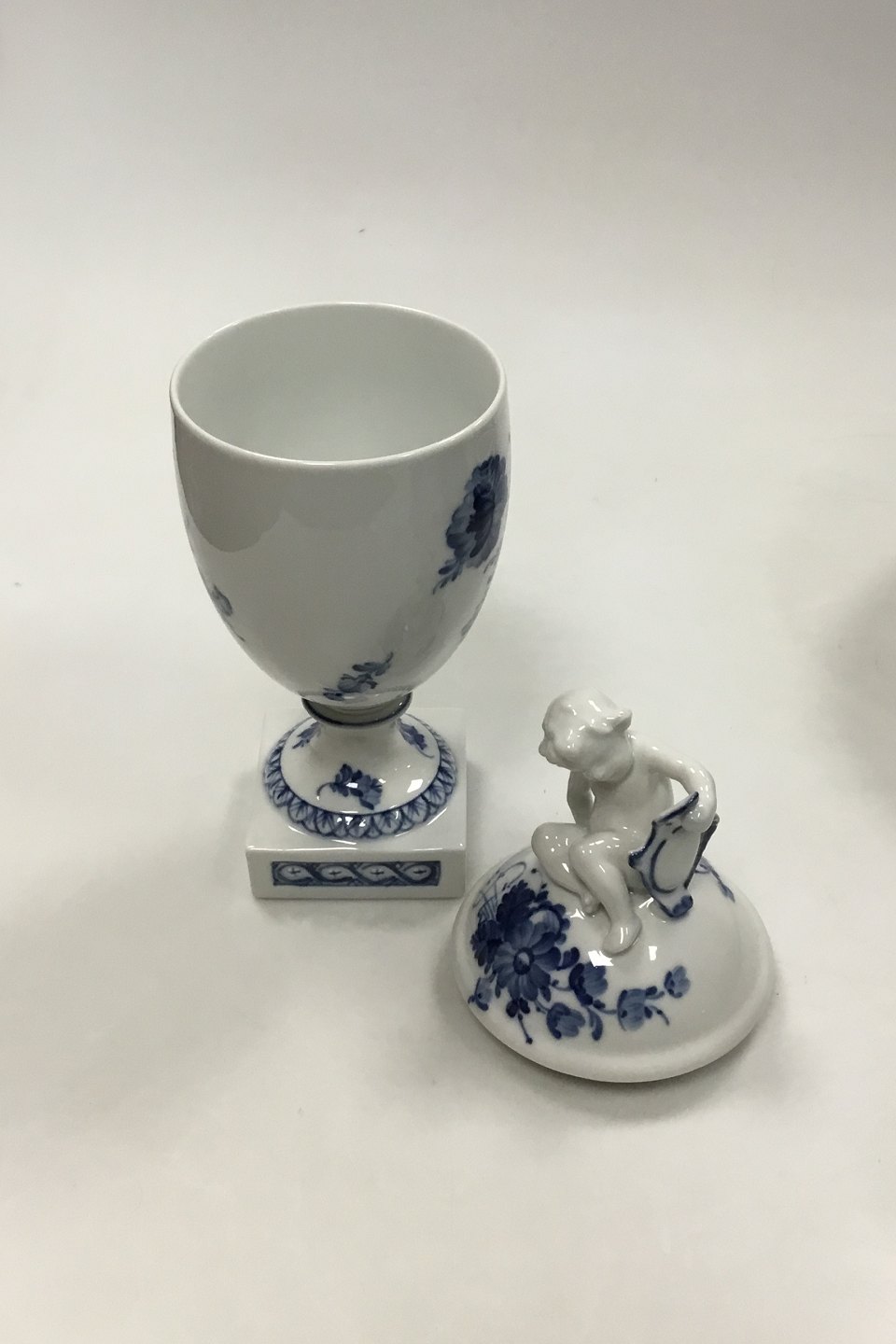 Royal Copenhagen Blue Flower Lidded Cup with Putti on top No 1754. Measures 29 cm / 11.42 in.