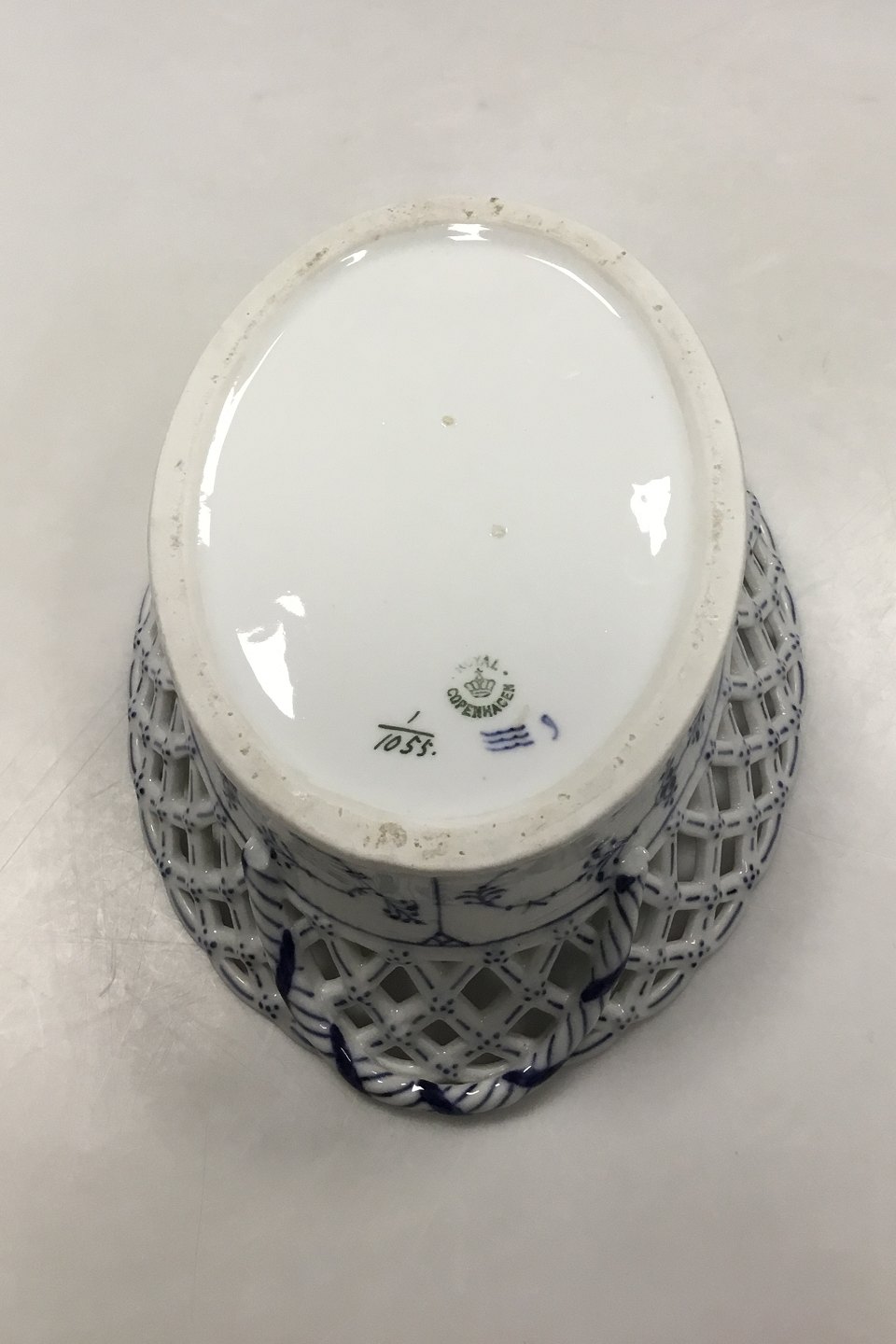 Royal Copenhagen Blue Fluted Full Lace Fruit Bowl No 1055. 2nd Quality. Measures 25.5 cm / 10.04 inch