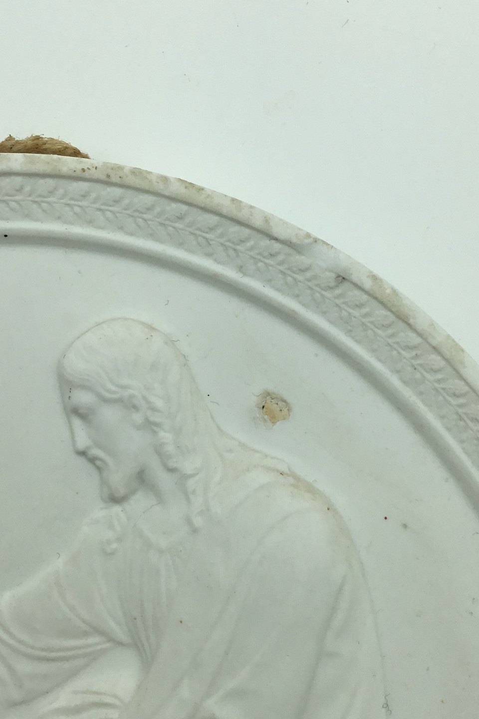 Royal Copenhagen Biscuit Plate "Christ Bless the Children" No 112. Copy of Chr. Christensen 1845. After Thorvaldsen's relief from 1805-1807. Measures 13.5cm (5.31 inches). Small chip behind Christ's head.