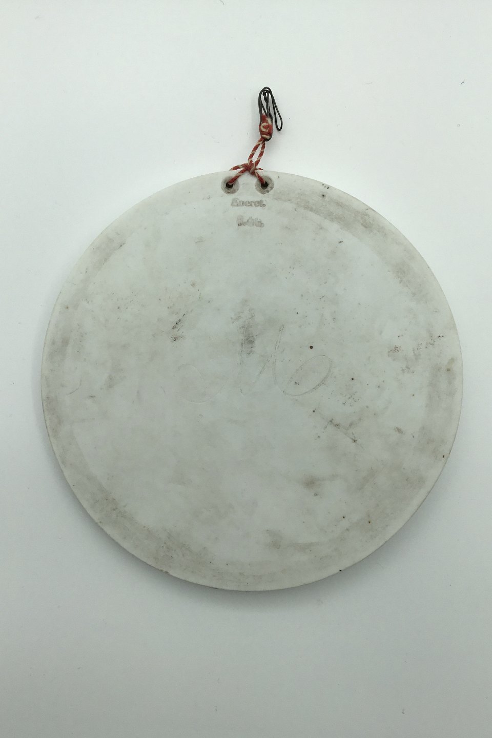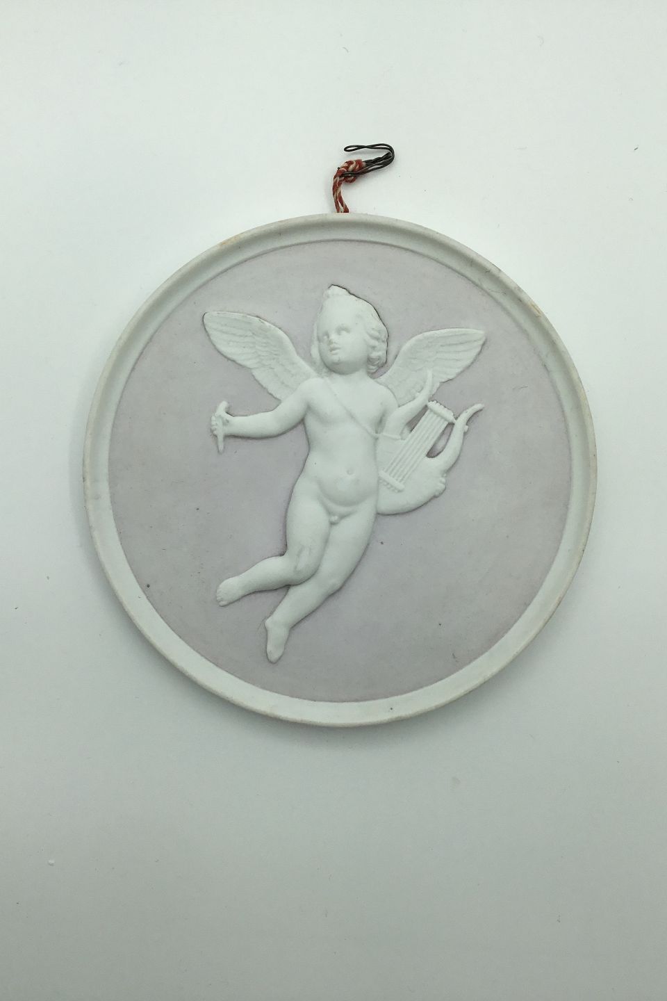 Bing and Grondahl Bisque Plate "Poesi Genius" with pink colored background No 104. Copy of original from 1838 done by Pietro Galli after drawing by Thorvaldsen. Measures 14,5cm (5.70 inch).