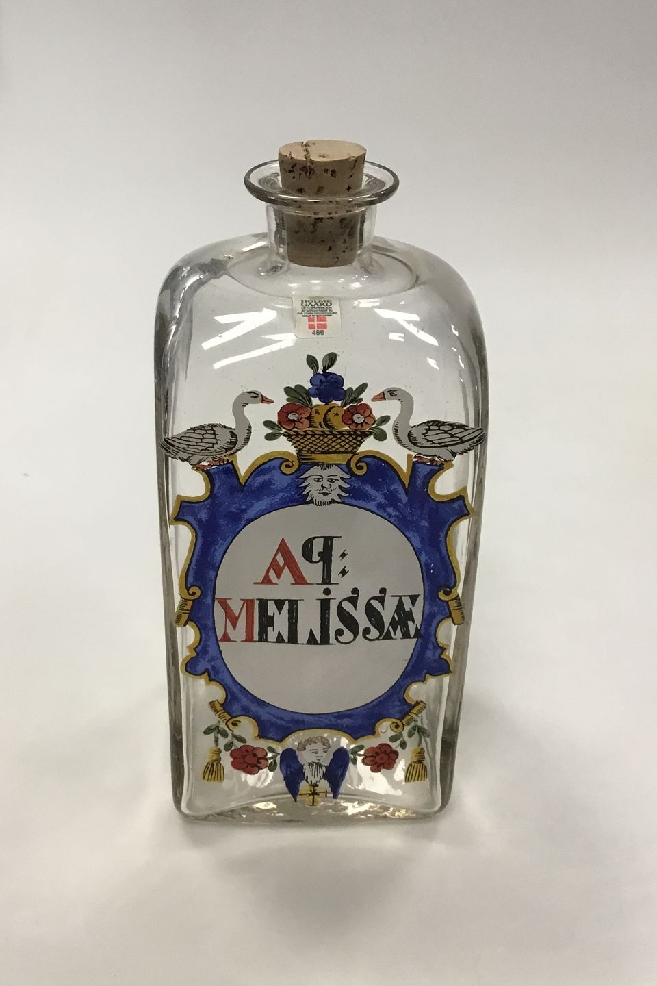 Holmegaard Pharmacy Jar with the text AP MELISSAE from 1986.
