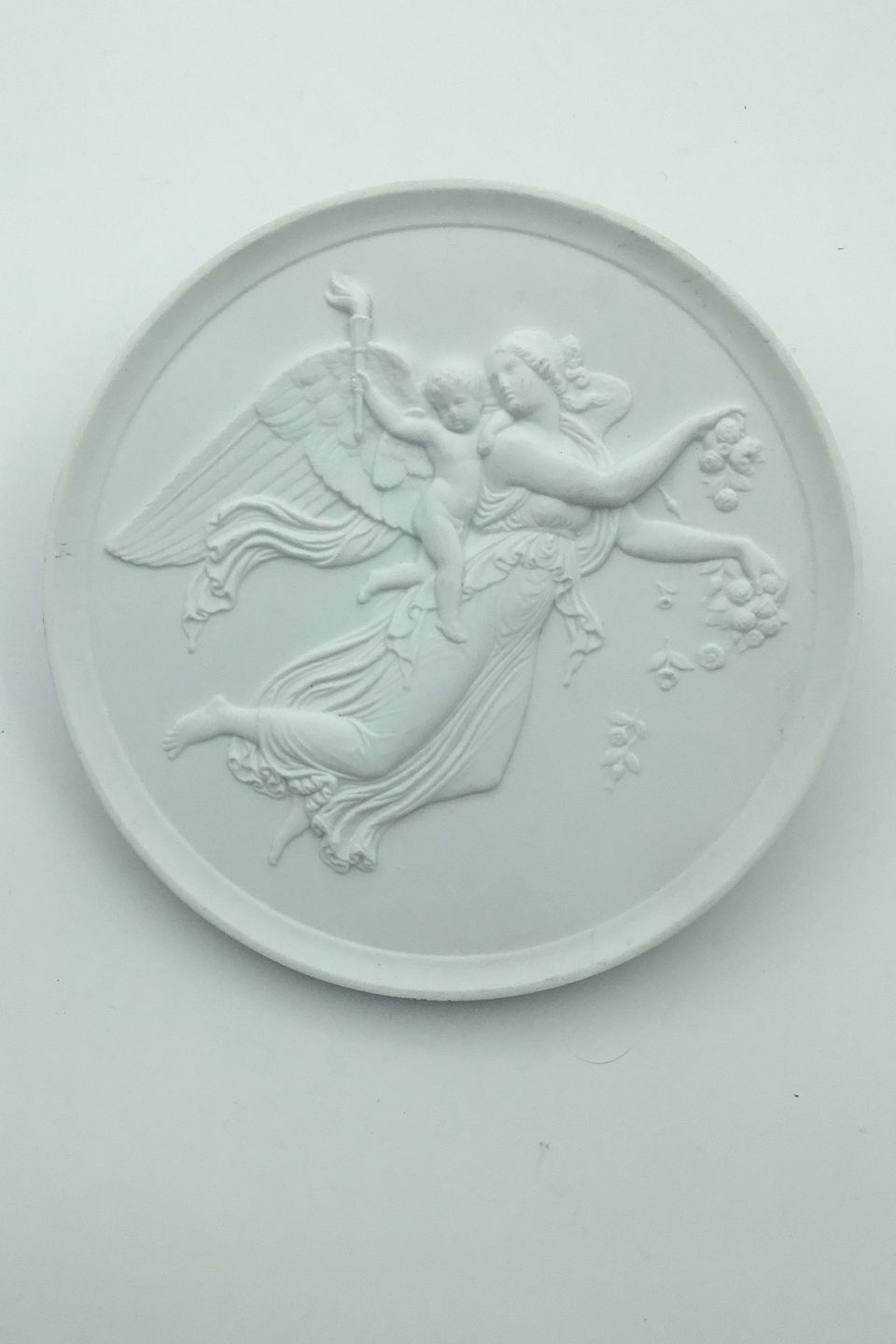 Bertel Thorvaldsen: Royal Copenhagen Biscuit Plate "Dagen" No 86. Copy from 1840 after Thorvaldsen's original from Rome 1815. Measures 14.5cm (5.70 inches). Manufactured after 1950.
