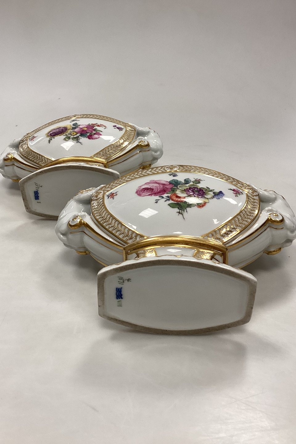 Pair of Royal Copenhagen Full Saxon Flower bouquetièrs / Vases with lionheads No. 1571