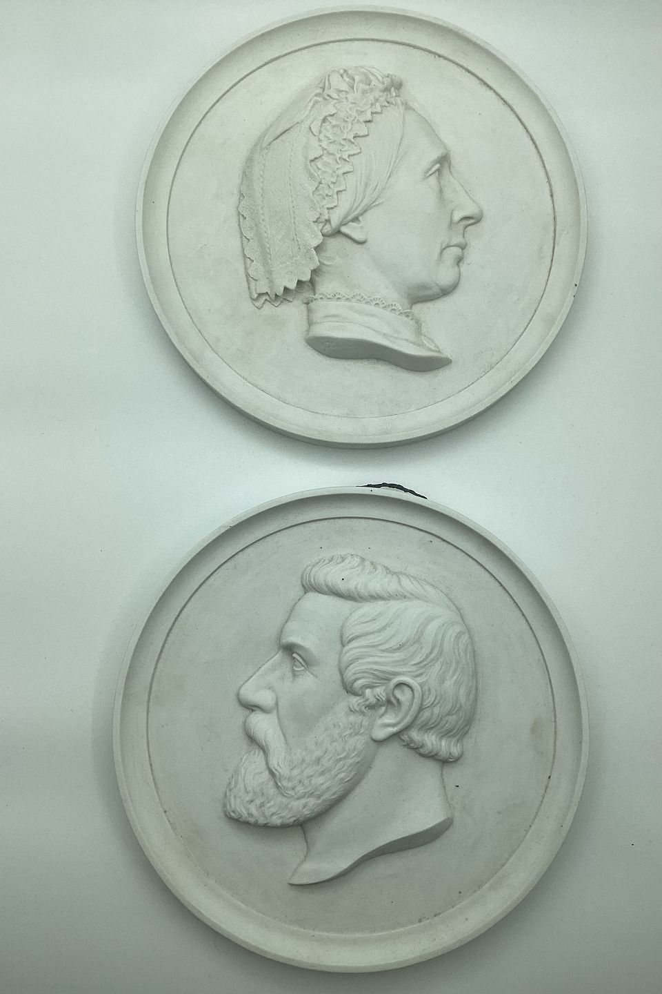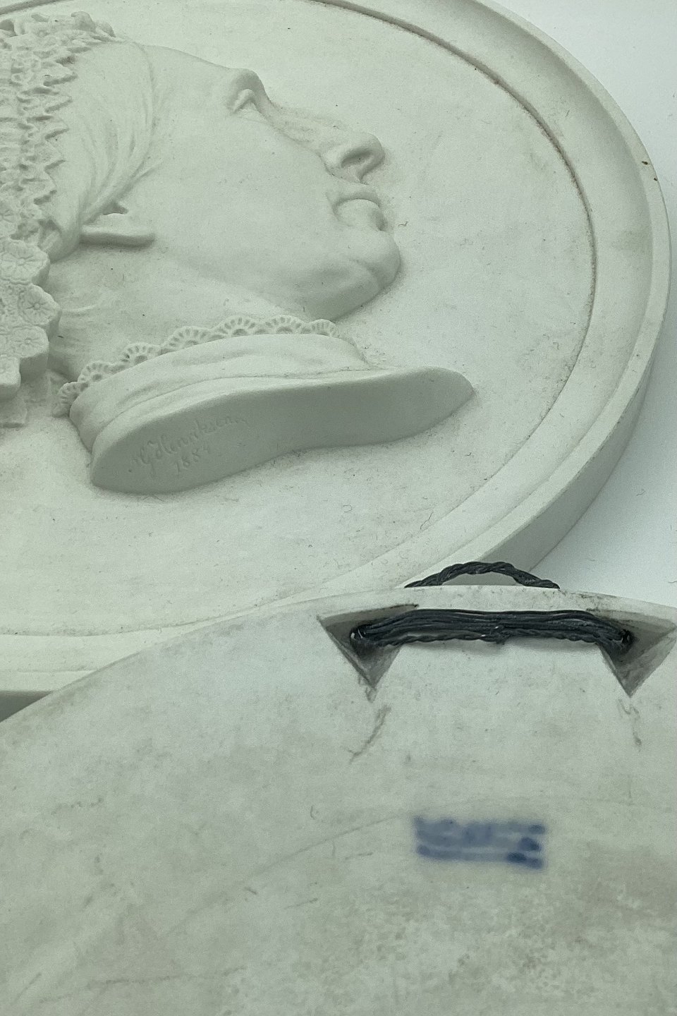 Pair of Royal Copenhagen portrait plates in bisquit by Niels Georg Henriksen