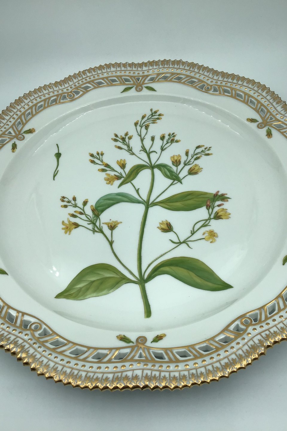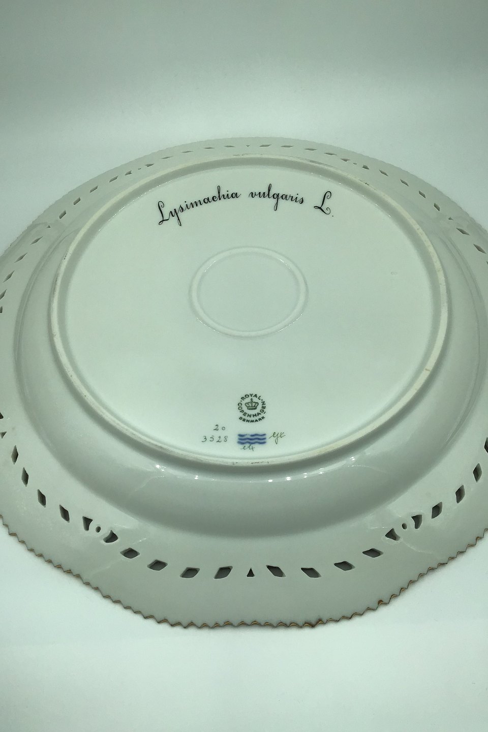 Royal Copenhagen Flora Danica Large Round Tray No 20/3528. Latin name: "Lysimachia vulgaris L" Measures Diam 33,5 cm (13.18 inch) (Chipped)