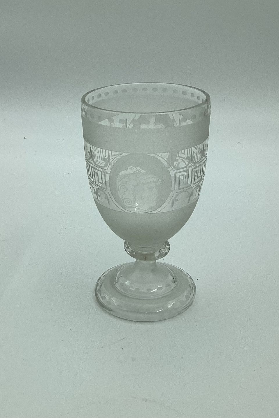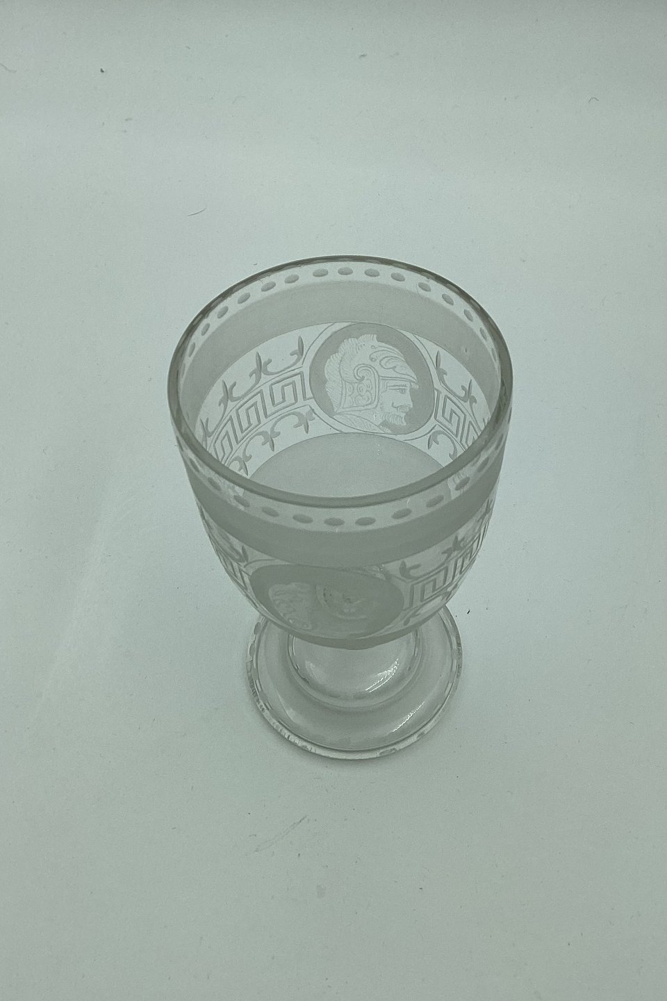 Wine glass with big sanding work on the basin. Made around 1900. In good condition without damage or repairs. H. 12 cm (4.72 inches)
