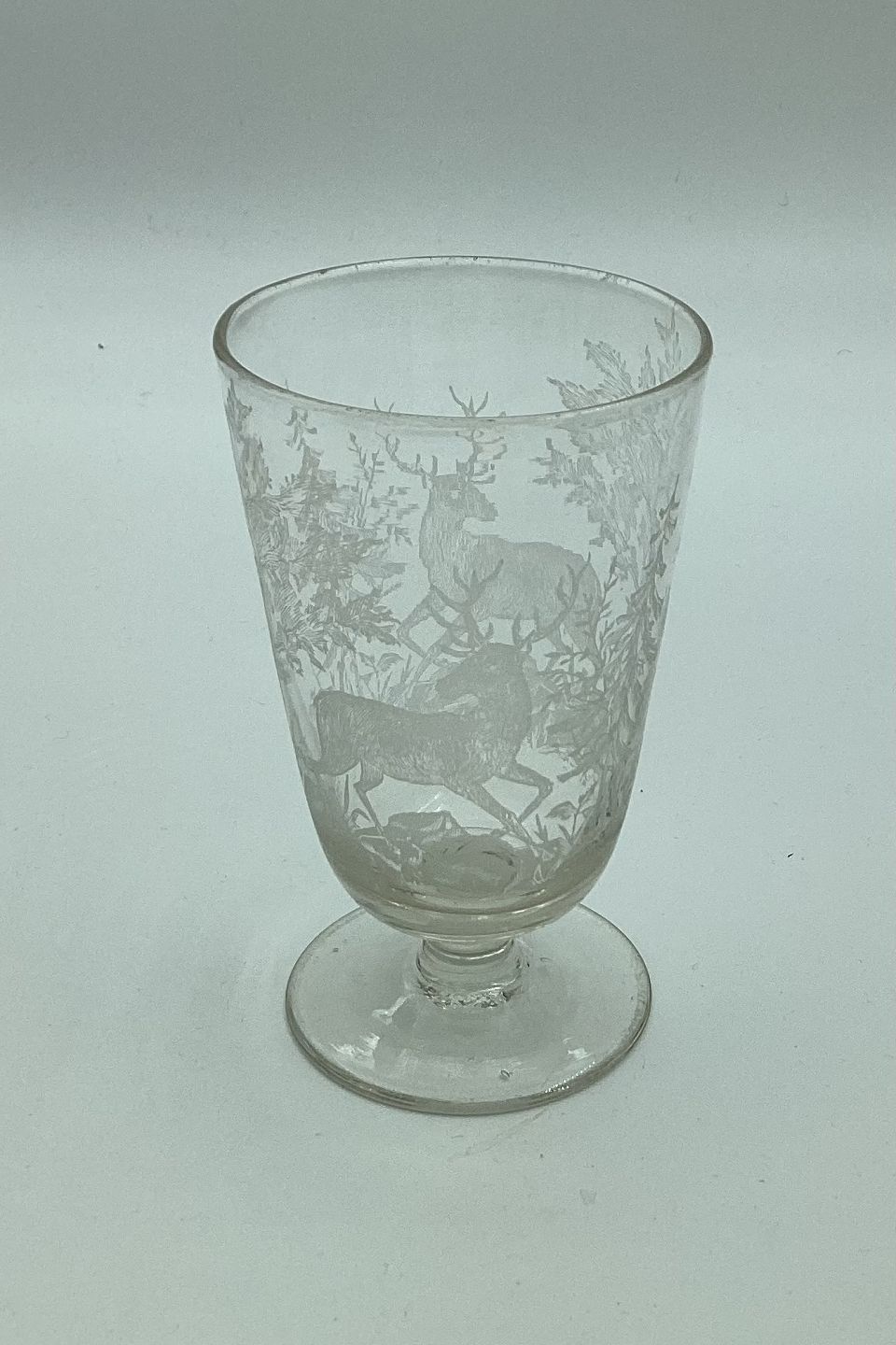 Toddy glass from Kastrup Glasværk: Glass with deer motif approx. 1910. In good condition. Etched motif with deer. H. 11 cm (4.33 inches)
