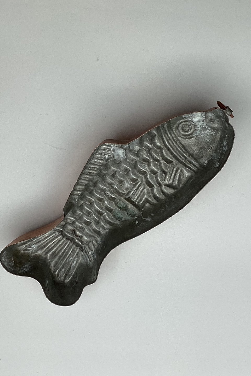 Decorative fish shape in metal copper. In good condition. Dimensions: 28.5 (11.22 inches)