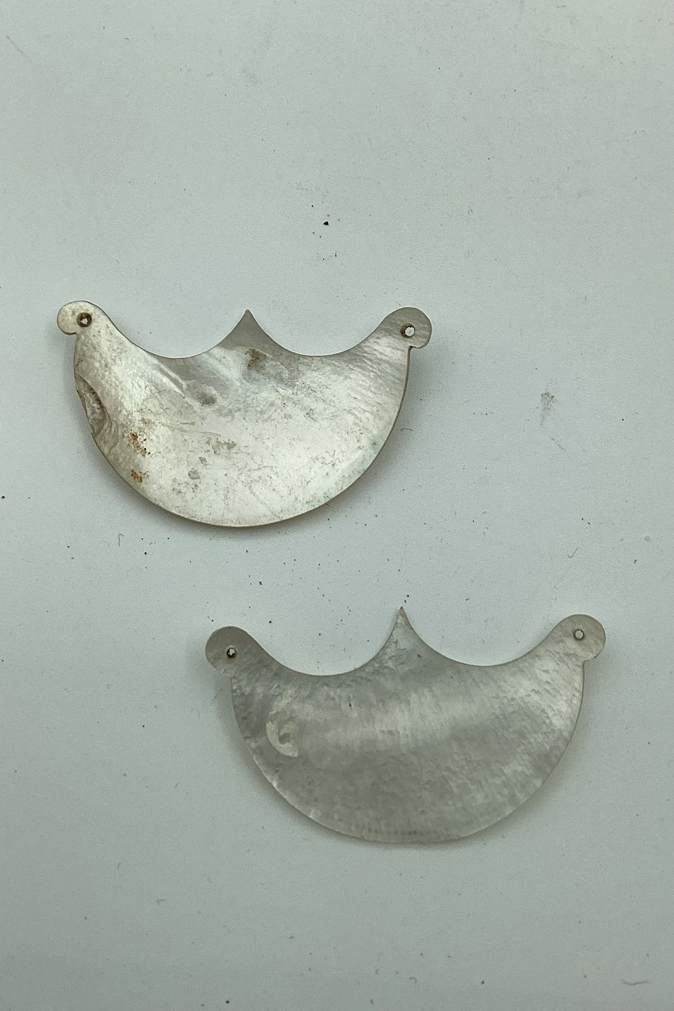 Spiritus & Hedvins carafe sign: ROM and MADERA sign in mother of pearl. Made around 1900. Both in good condition. Sold individually for DKK 350.00. Dimensions: 3½ 5½ 3.5 cm high (1.37 inches) and 5.5 cm long (2.16 inches)