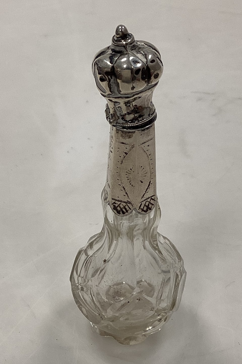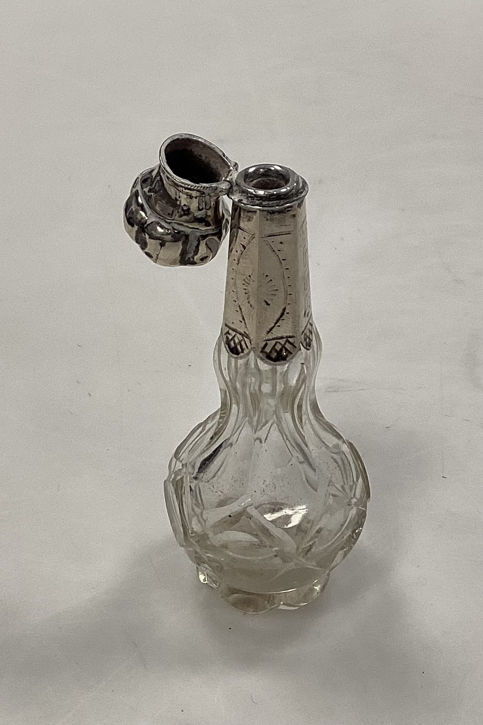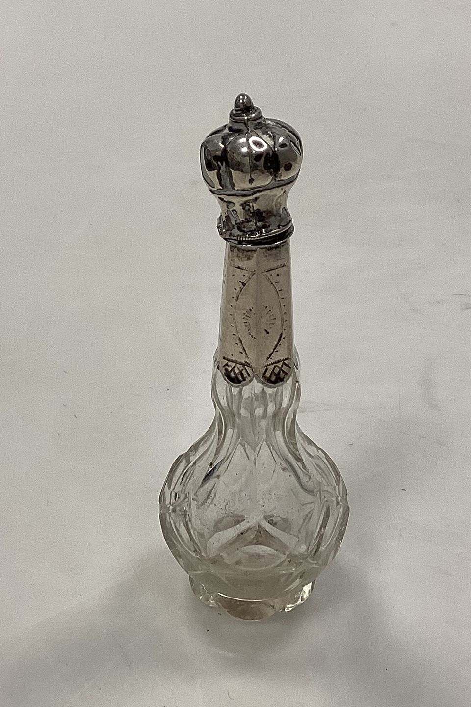 Perfume bottle in glass with silver mounting 19th century. In good condition. Silver mounting slightly skewed, as the pictures show! H. 12 cm (4.72 inches)