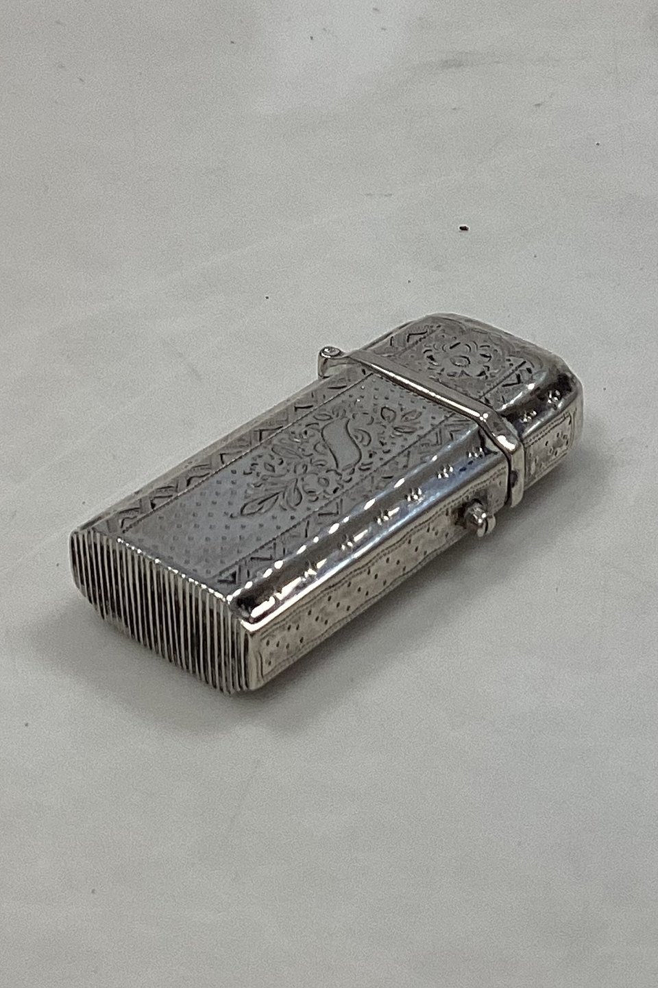 Silver container box for matches. Made in the second half of the 19th century. Silver marked. H. 6.6 cm (2.55 inch)