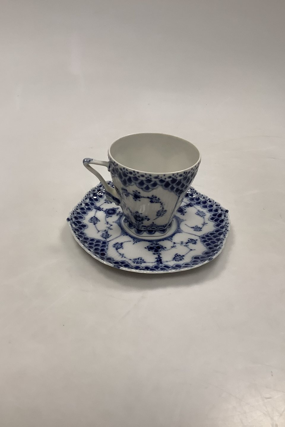 Royal Copenhagen Blue Fluted Full Lace Coffee Cup No. 1036. Measures 7,5cm / 2.95 inch. dia and is in good condition. 1st Quality