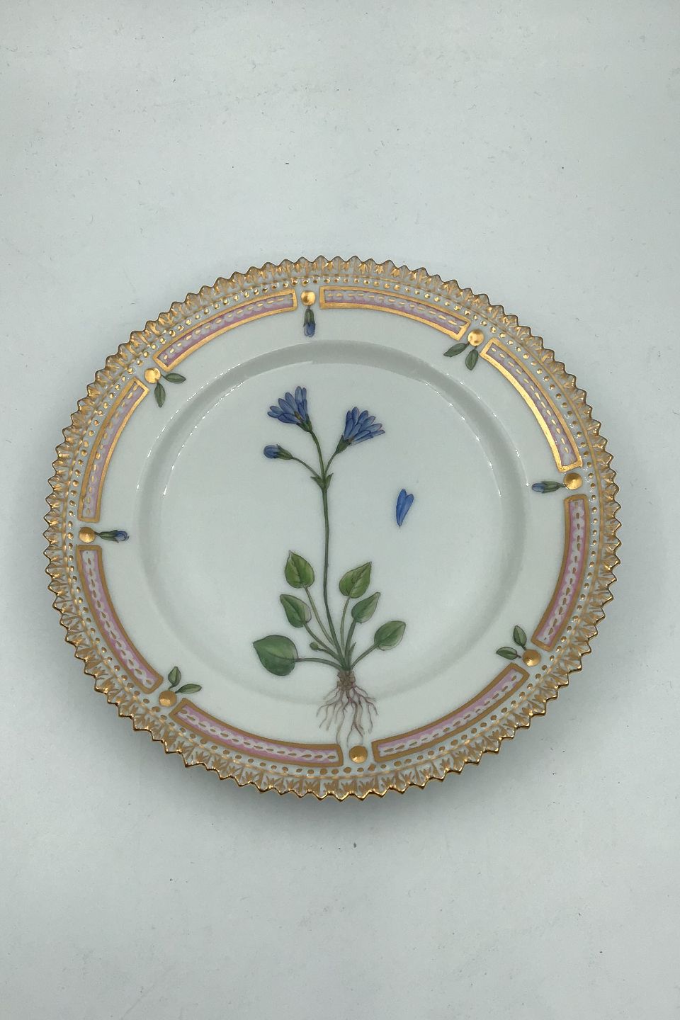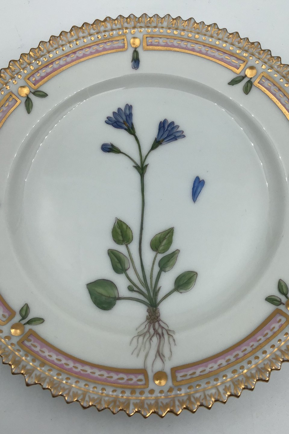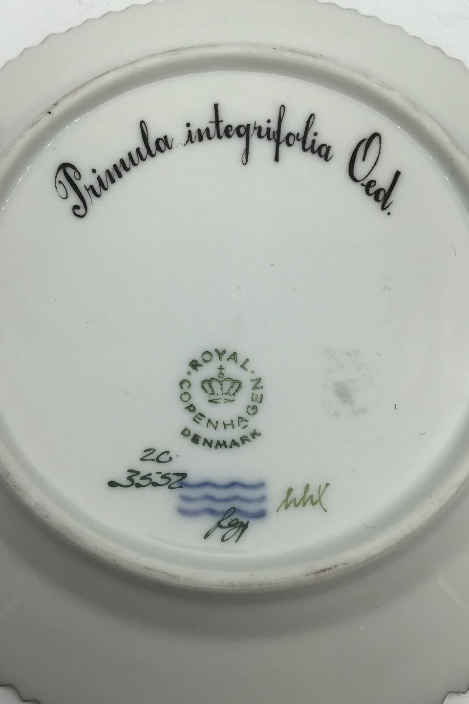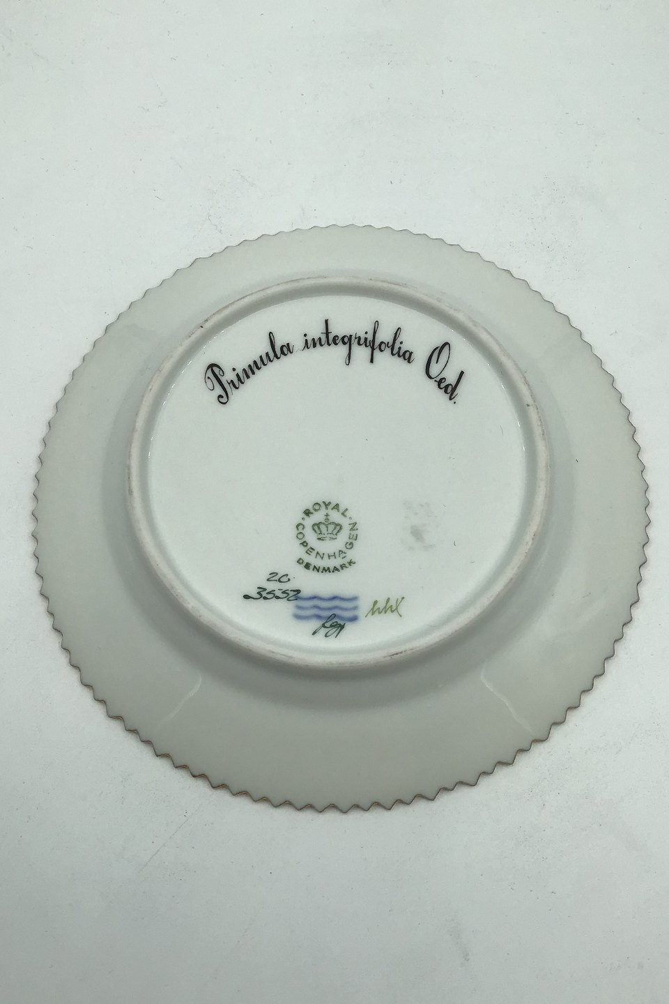 Royal Copenhagen Flora Danica Cake Plate No 20/3552 Latin Name: Primula integrifolia Oed. Measures Diam 14.3 cm.(5.62 inch)