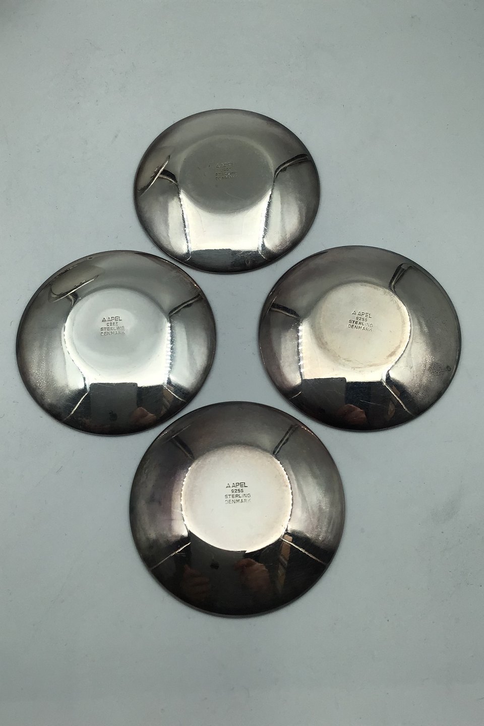 A.Apel Sterling Silver Coloured enamel Dishes (4) Measures Diam 6.6 cm (2.59 inch) Combined weight 112 gr /3.95 oz