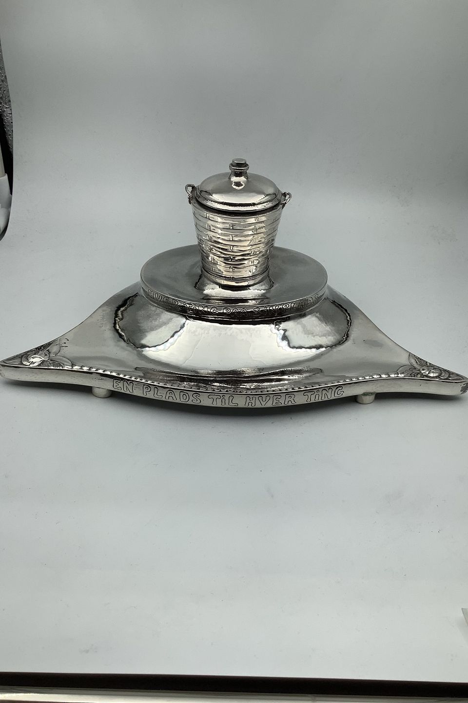 Danish Silver Inkwell with Proverb by Emil Snedker