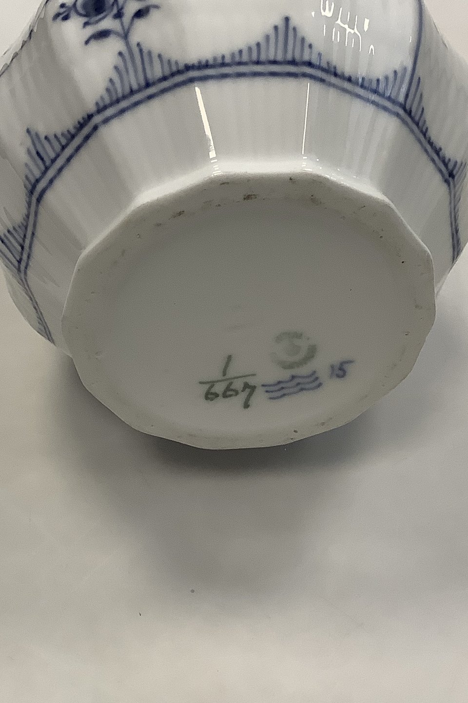 Royal Copenhagen Blue Fluted Half Lace Pitcher No 667. 2st Quality. Has areas on the handle with missing glaze.