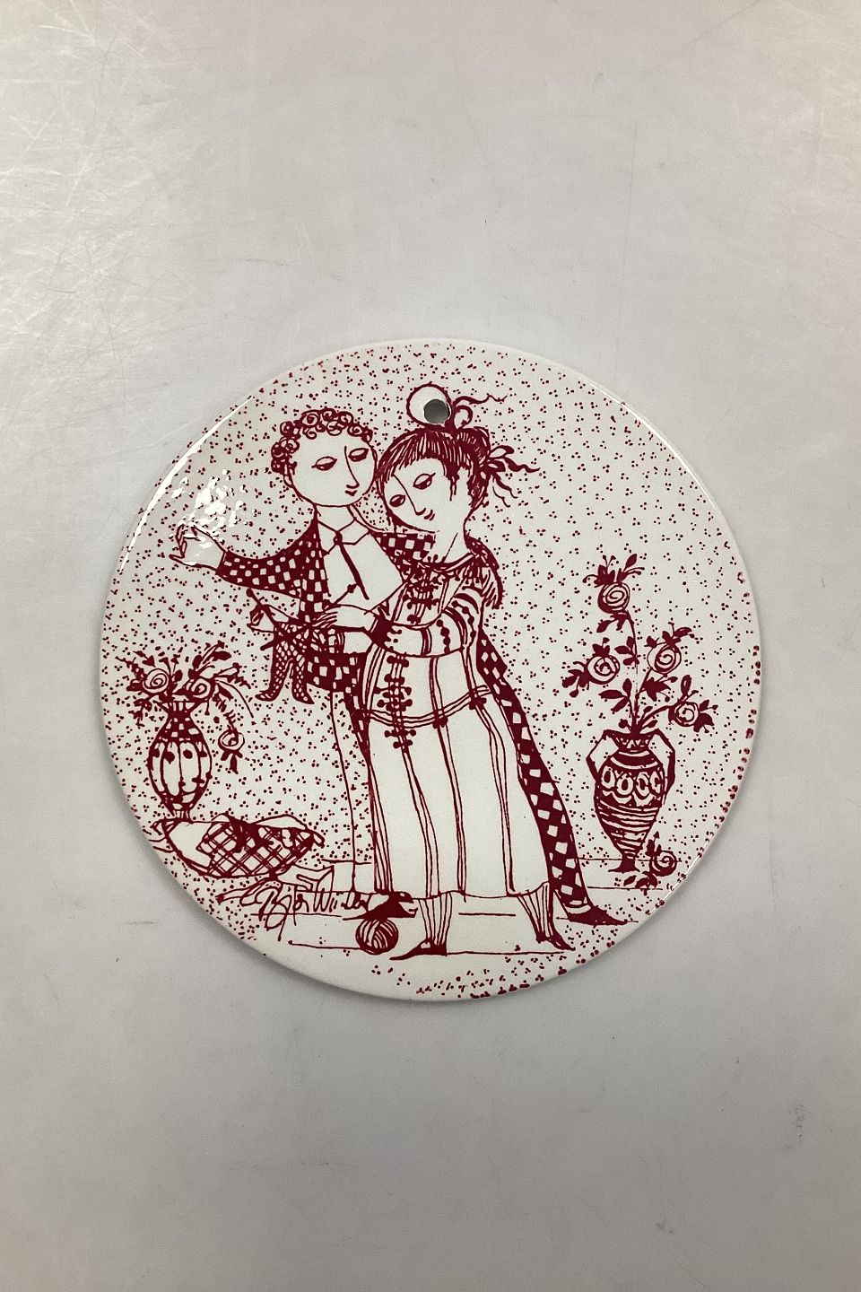 Red monthly plate in faience for November - OPTIMISME (Optimism). Designed by Bjørn Wiinblad for Nymølle. In good condition. The factory mark on the back. Dimensions: 15 cm (5.90 inches)