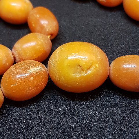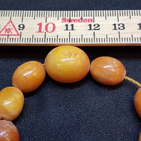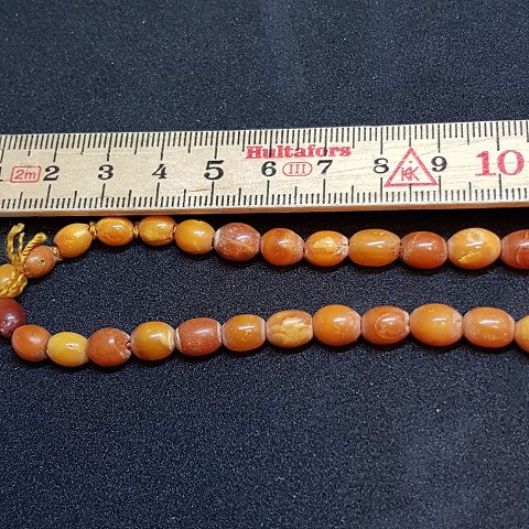 Antique Butterscotch baltic sea amber necklace with olive shaped beads. Length 72 cm. Weight 35.5 grams