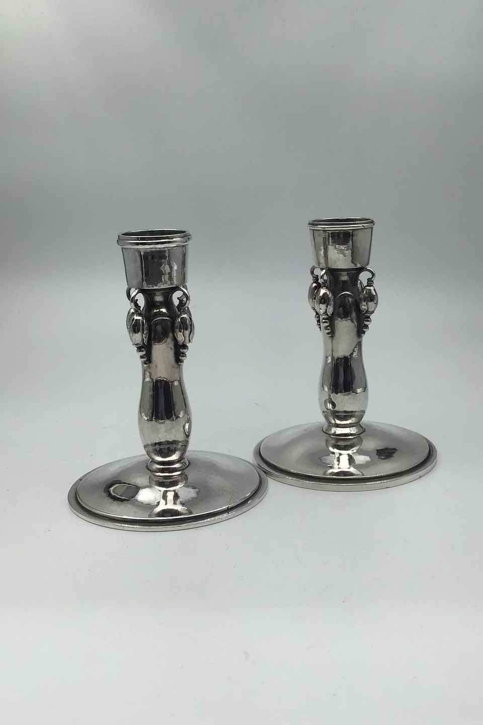 Georg Jensen Sterling Silver Blossom Candlesticks No 2 (1925-1933) (2) Measures H 10.5 cm (4.13 inch) Combined weight 348 gr (12.18 oz)