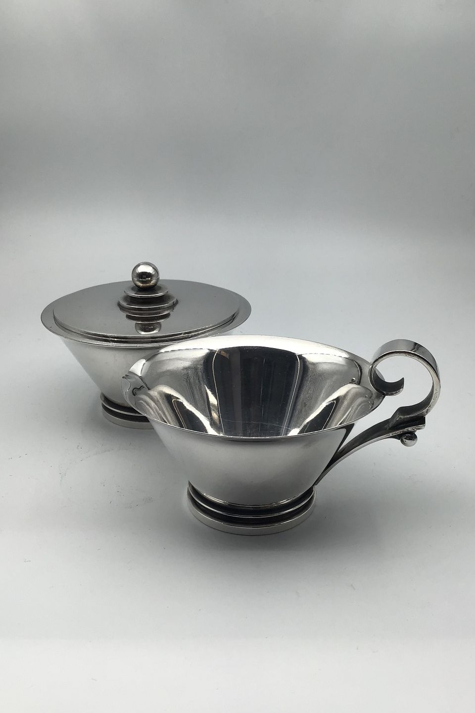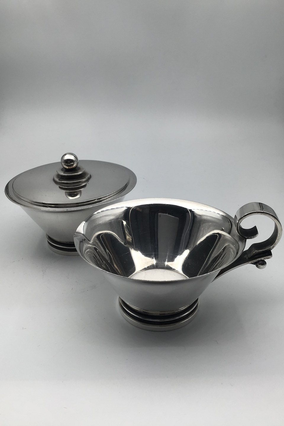 Georg Jensen Sterling Silver Pyramid Creamer and Sugar Bowl No 600A Measures H 7 cm/2.75 inch Combined weight 374 gr / 13.19 oz