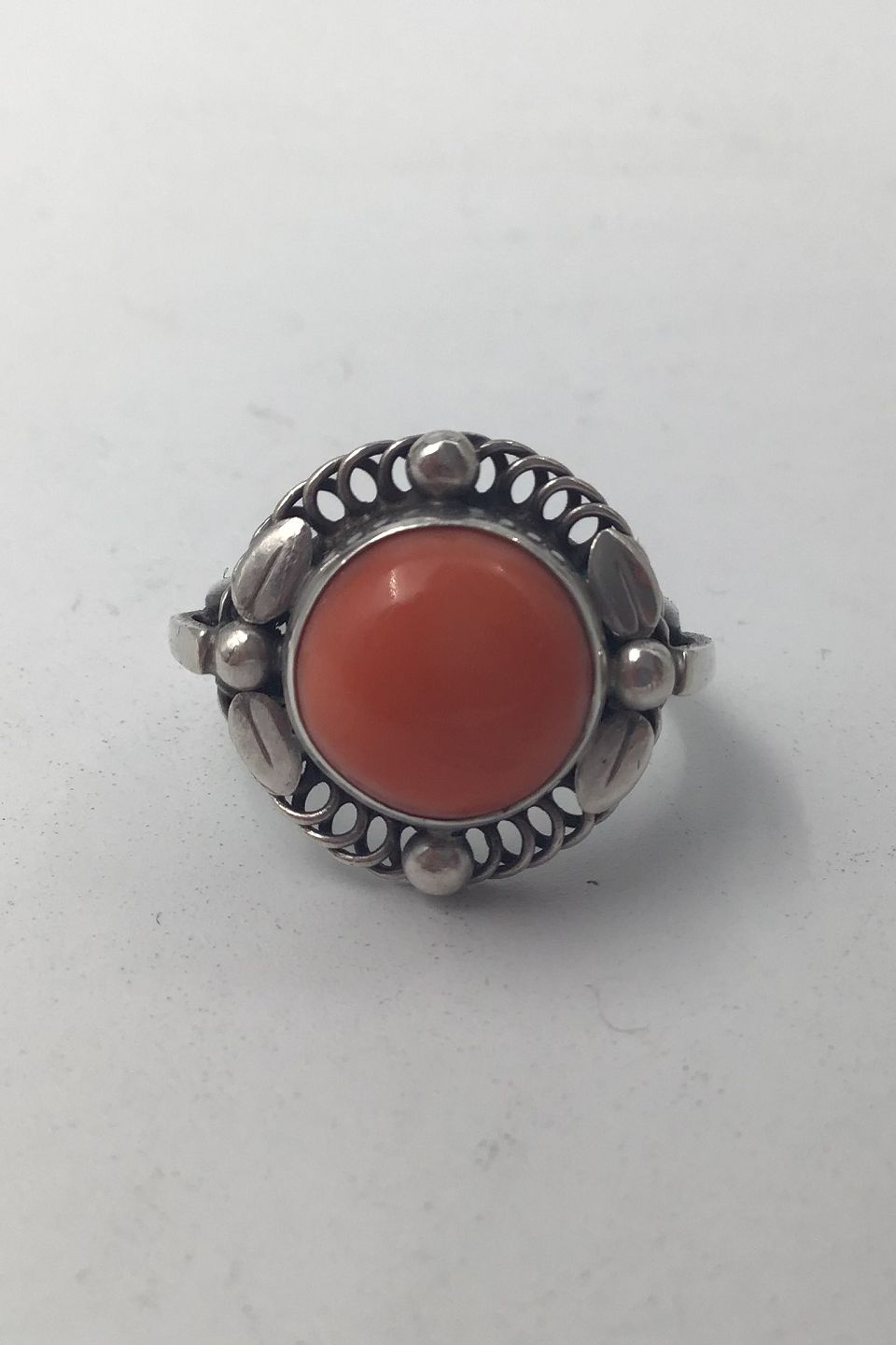 Georg Jensen Sterling Silver Ring No. 1 Coral (1930-1945) Ring Size 54 (US 6 3/4) Weight 5.0 gr (0.17 oz)