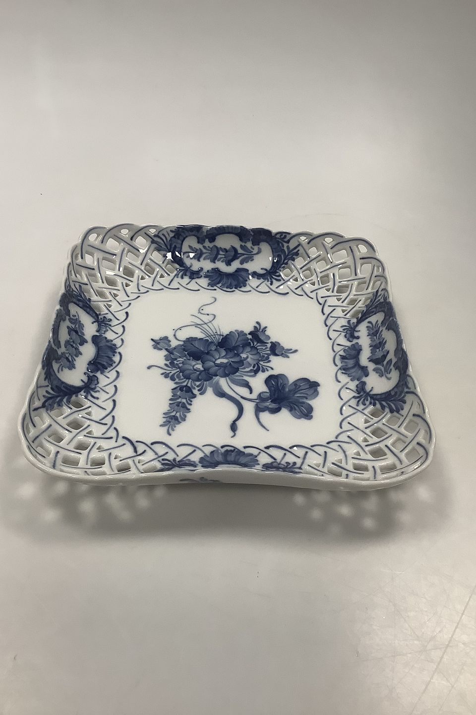 Royal Copenhagen Blå Flower Curved Square Dish with Pierced Border No 1523. Measures 23 cm / 9 1/16 in. x 23 cm / 9 1/16 in.