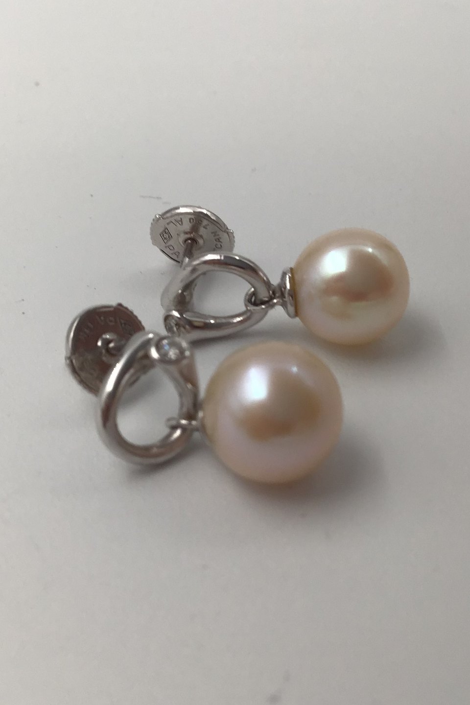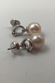 Georg Jensen 18K Whitegold Earrings Magic Pearl and Diamonds Regitze Overgaard Measures L 1.8 cm. (0.70 inch) Diam: 0.8 cm. (0.31 inch) Combined Weight 3.9 gr (0.13 oz)