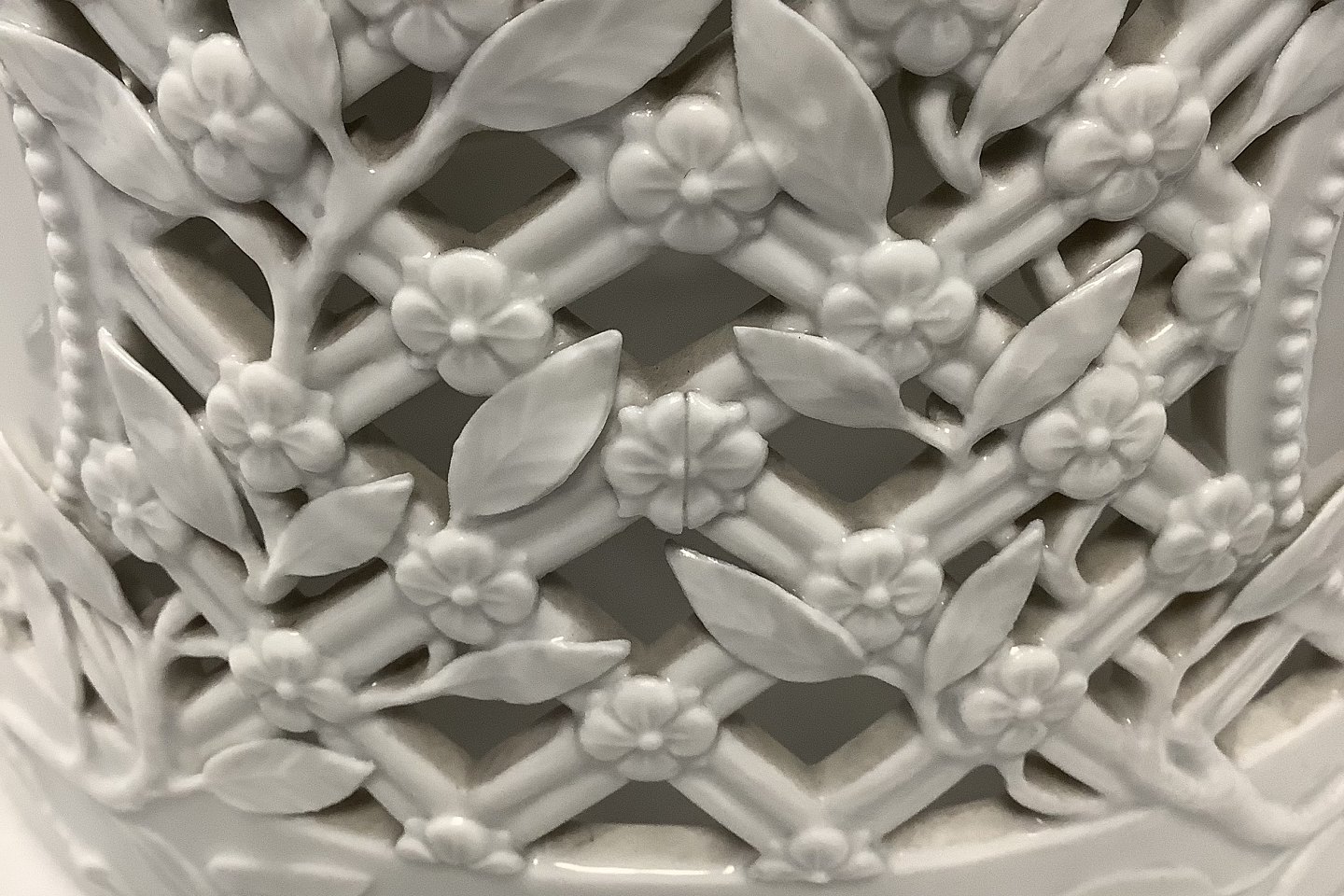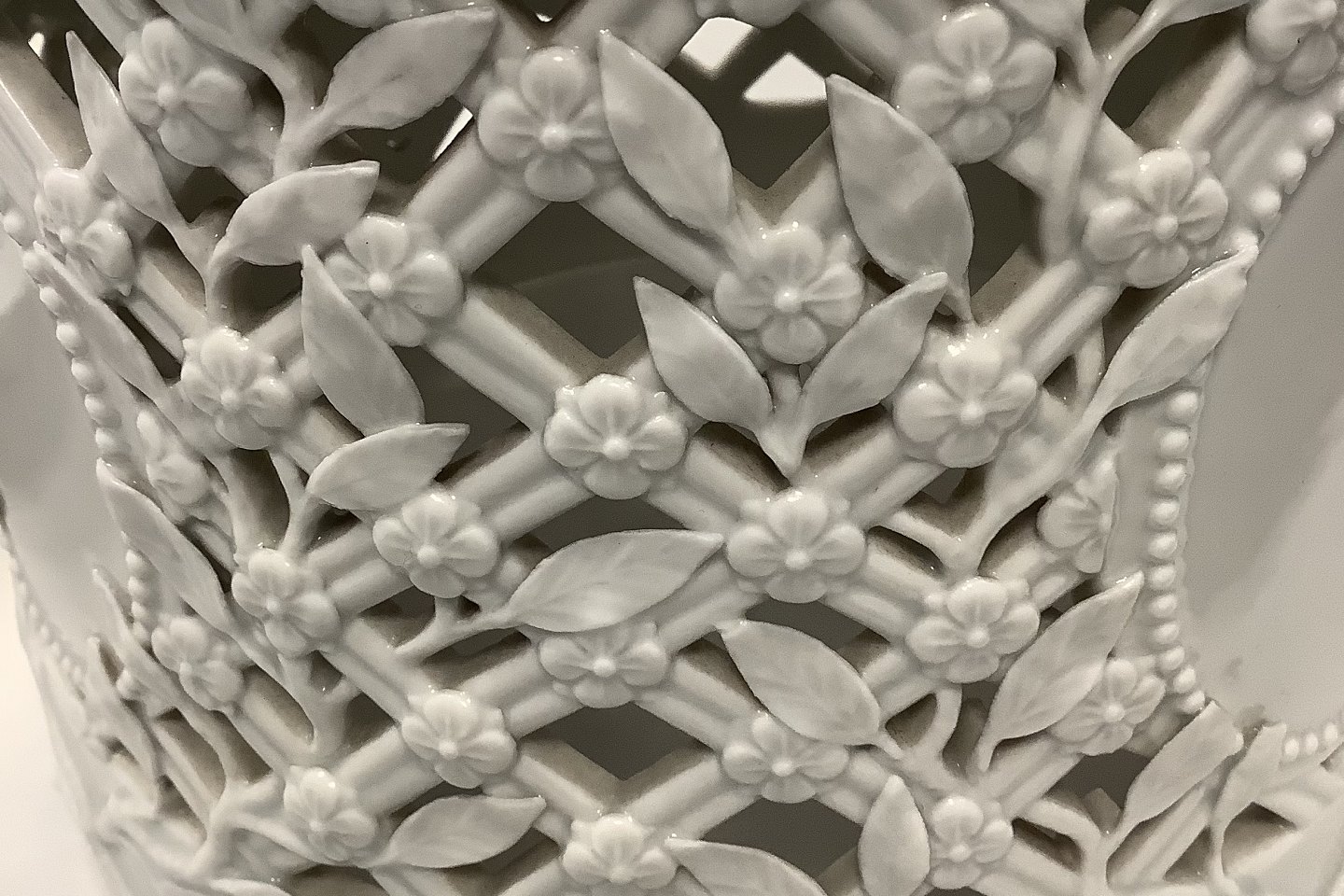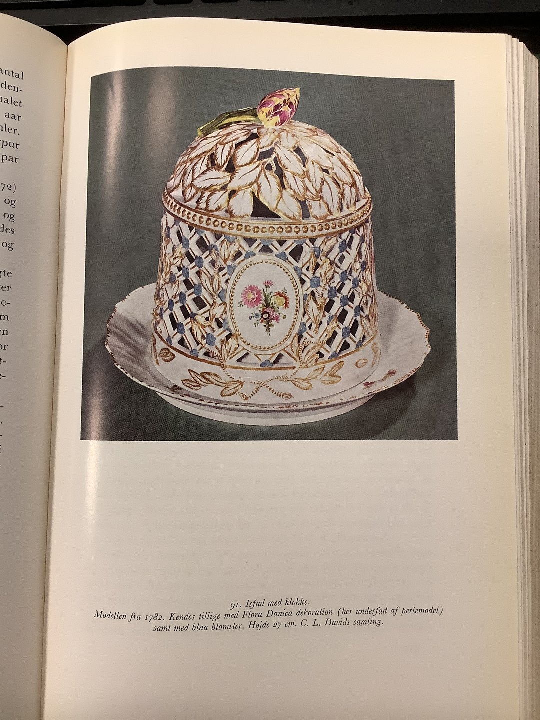 Copy of old original from 1782. This one is from around 1910, and is marked as a second. Probably due to a firing crack in a flower.