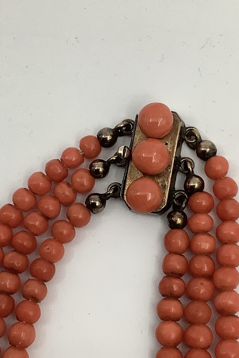 Antique 3 Row Red Coral Pearl Necklace