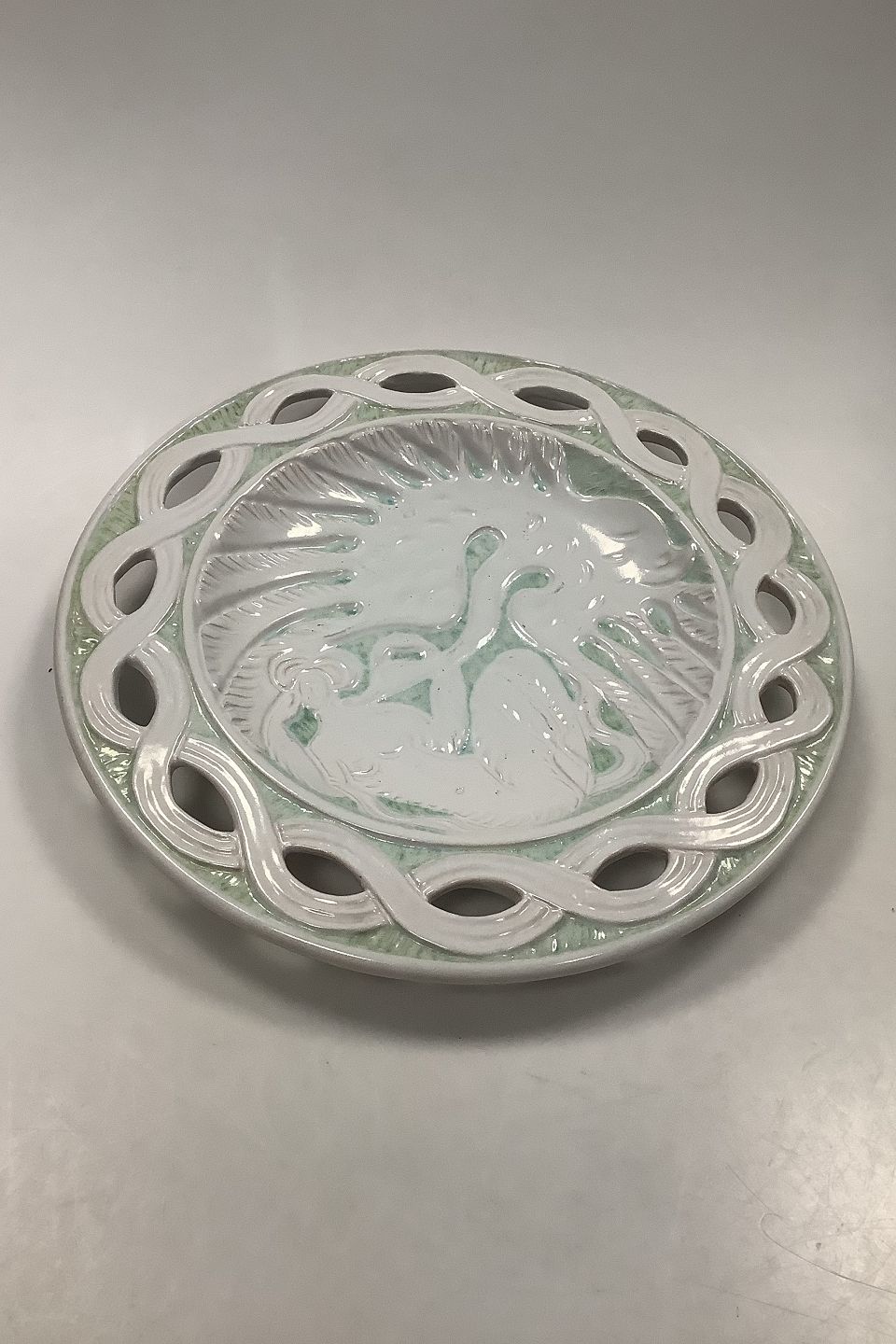 Michael Andersen and Son Large Glazed Ceramic tray with woman and Swan No 5156