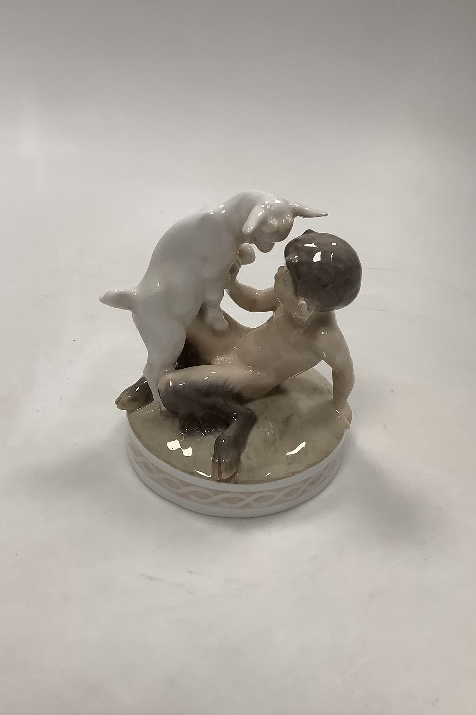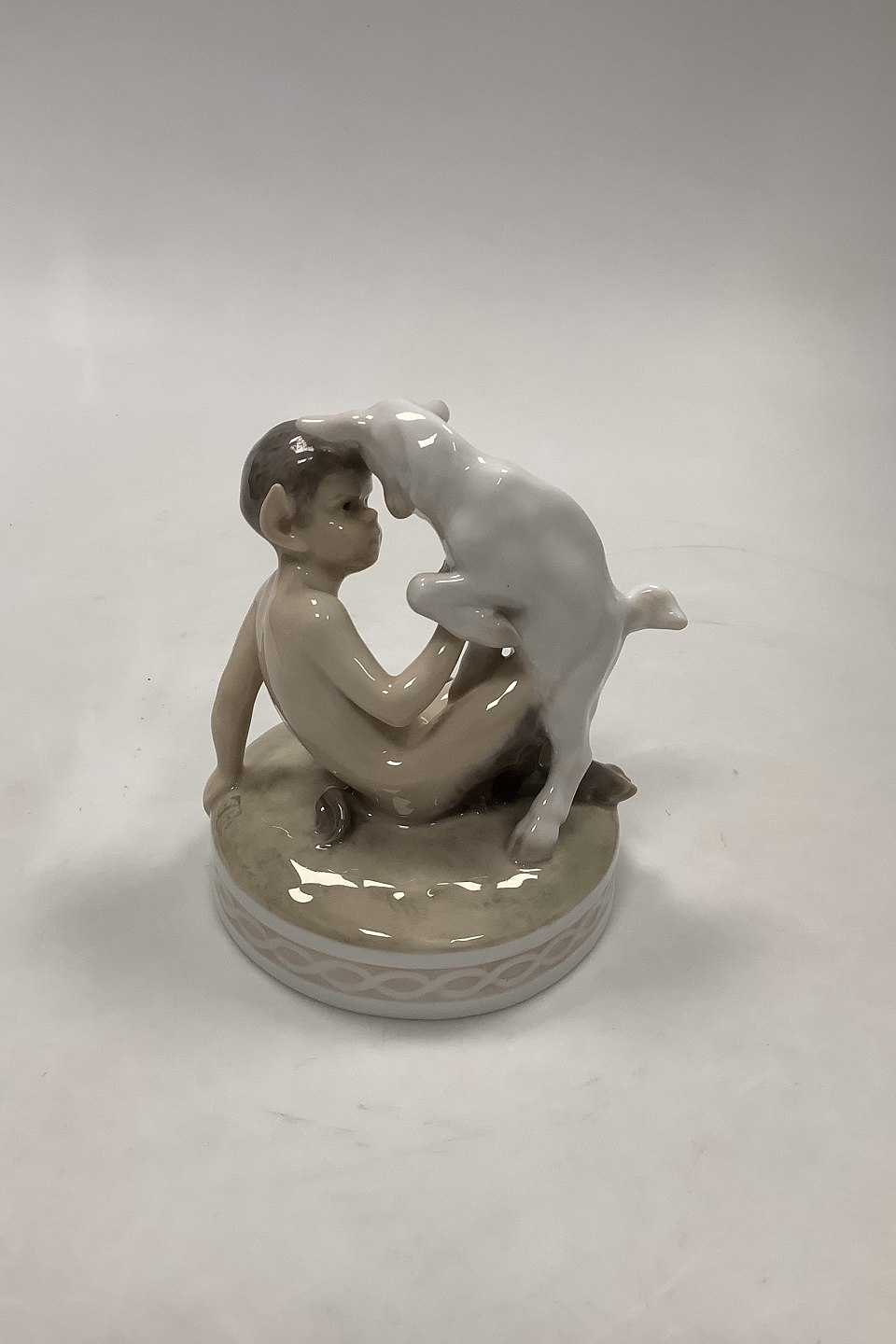 Royal Copenhagen Figurine Faun with Kid No. 498. Designed by Chr. Thomsen in 1906. Measures 13 cm / 5.12 in.
