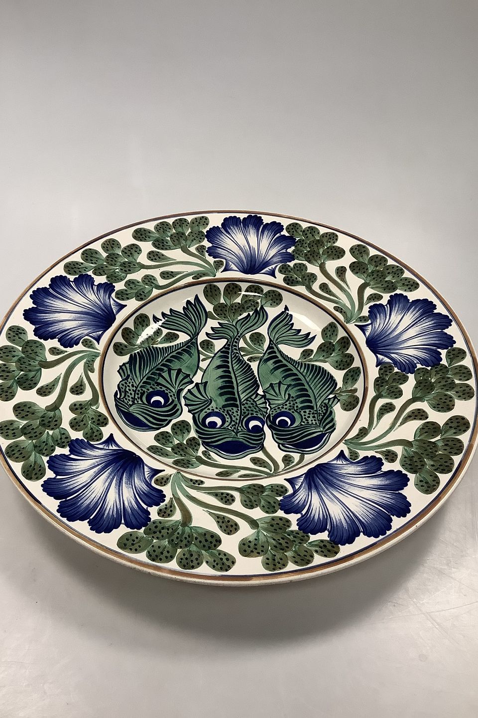 Aluminia Earthenware Round Dish / Bowl No 385/300 with Fish Motif. Measures 45.5cm dia (17 29/32"). In great condition without chips, reparations etc.