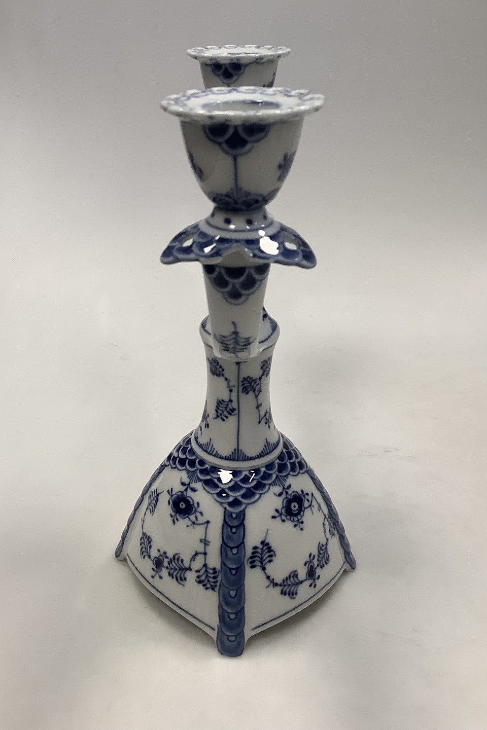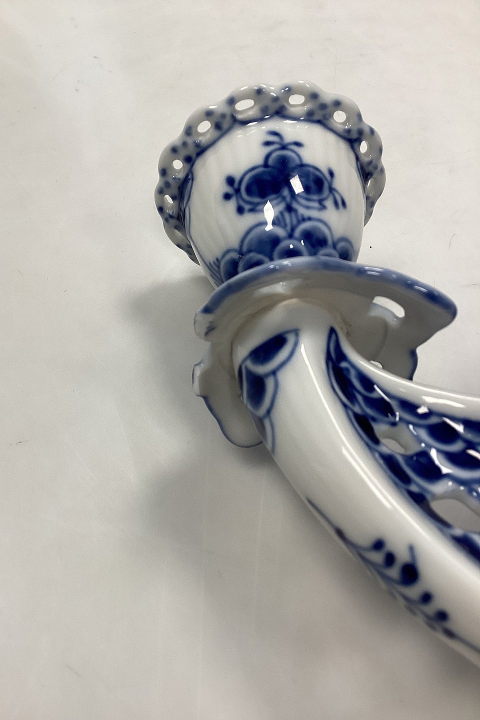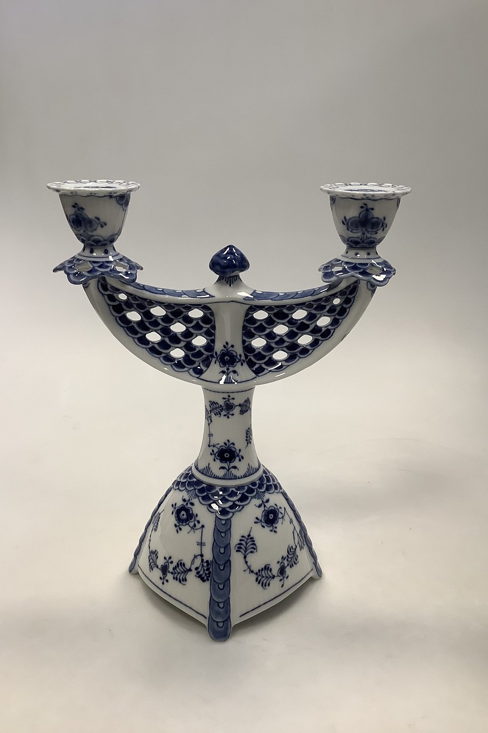 Royal Copenhagen Blue Fluted Full Lace Two-Armed Candelabra No 1169. Measures 24 cm (9.45 in). 1st Quality with chipping on one light holder.