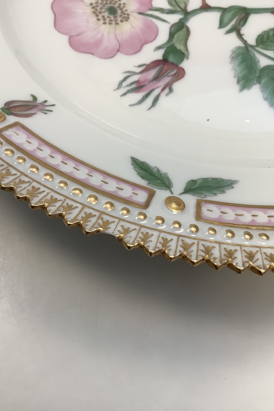 Royal Copenhagen Flora Danica Lunch Plate No 20/3550. Measures 22 cm / 8 21/32 in. 1st Quality. Latin name: "Rosa canina L"
