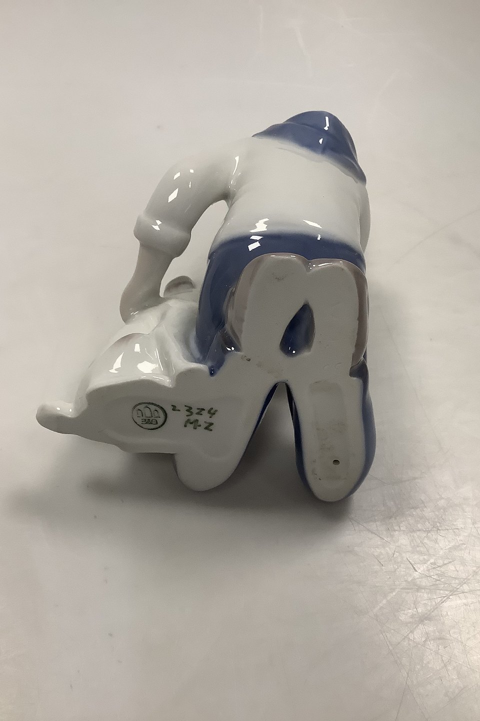 Bing and Grondahl Figurine of Boy Brushing His Dog No 2334. 1st Quality. 12 cm H (4 23/32").