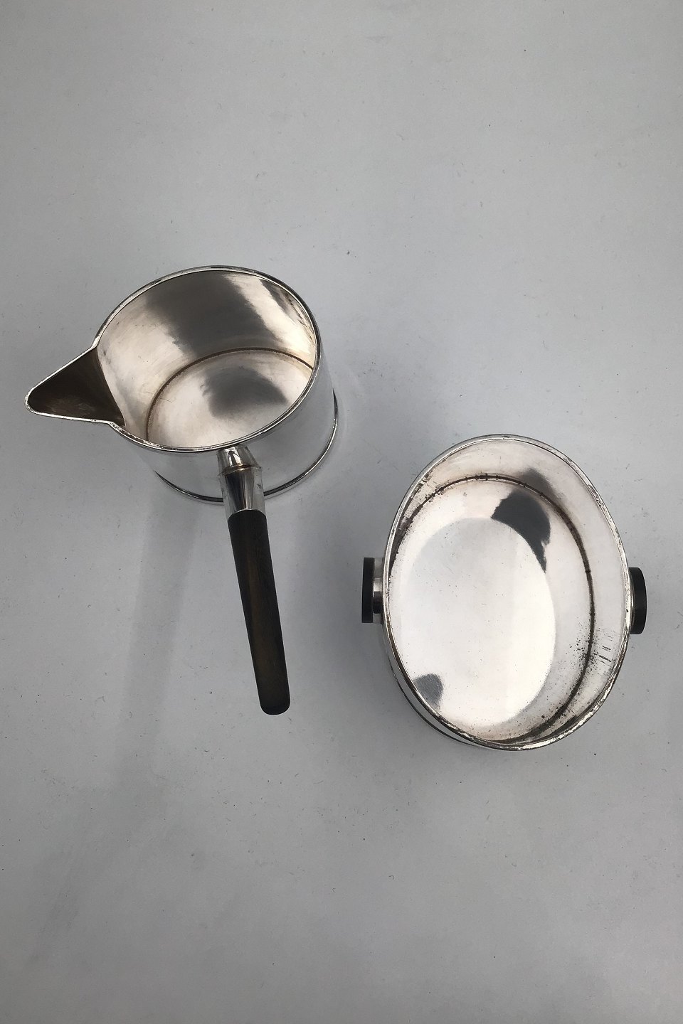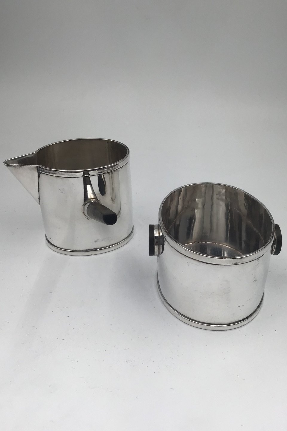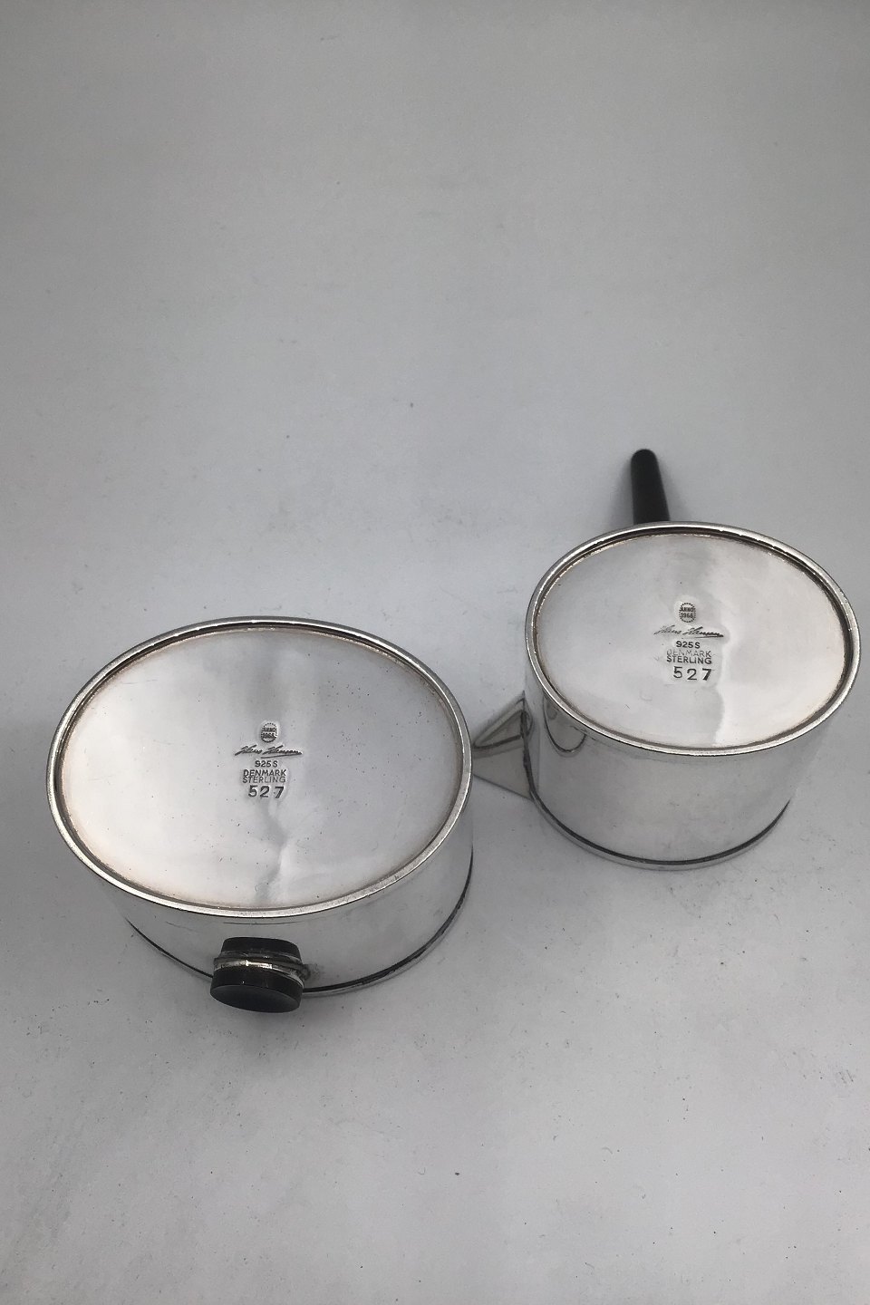 Hans Hansen Sterling Silver Cream/Sugar Set No 527 KGH (1966) Measures Creamer H 5.5 cm (2.16inch) Weight 102.5 gr (3.62 oz) Sugar H 4.5 cm (1.77 inch) Weight 111 gr (3.91 oz)
