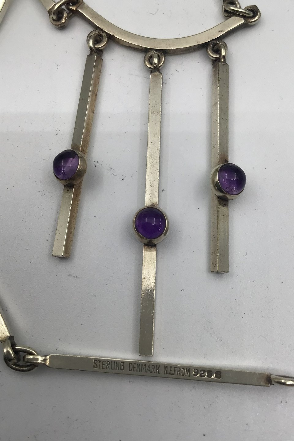 Niels Erik From Sterling Silver Necklace with amethyst pendent Measures 42 cm (16.53 inch) Weight 22.1 gr (0.78 oz)