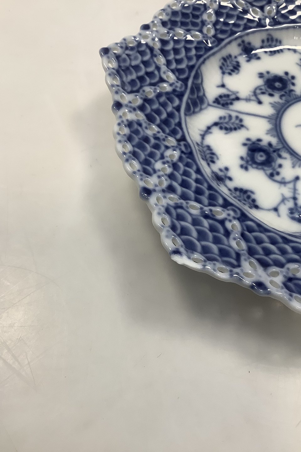 Royal Copenhagen Blue Fluted Full Lace Plate No 1144. 17.5 cm dia (6 57/64"). Has a chip on the edge.