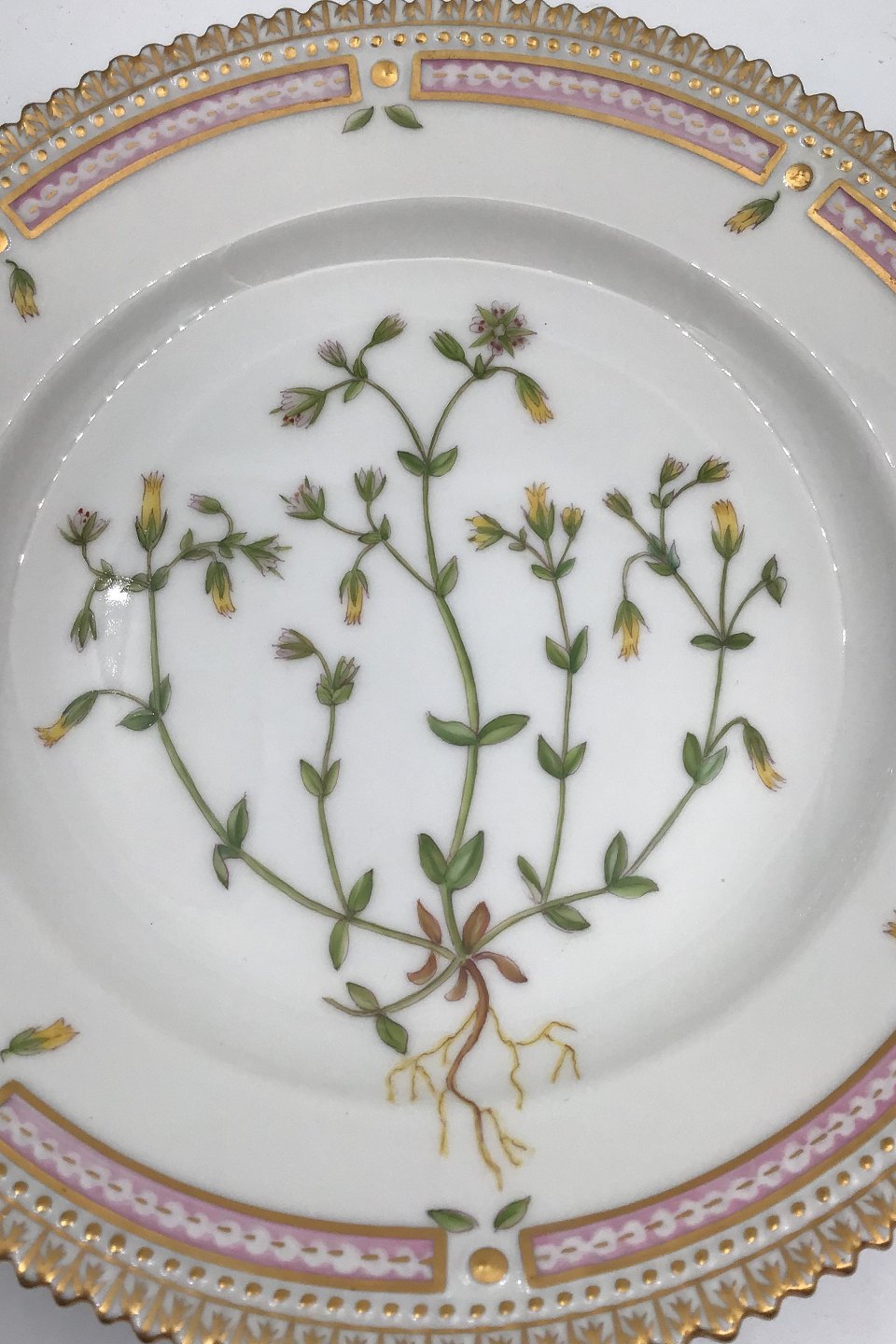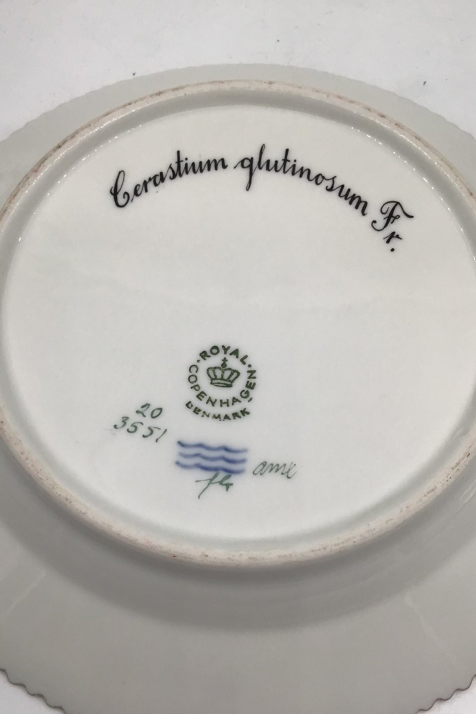 Royal Copenhagen Flora Danica Dessert Plate No 20/3551 1. quality. Latin Name: Cerastium glutinosum Fr. Measures 17 cm (6.69 inch)