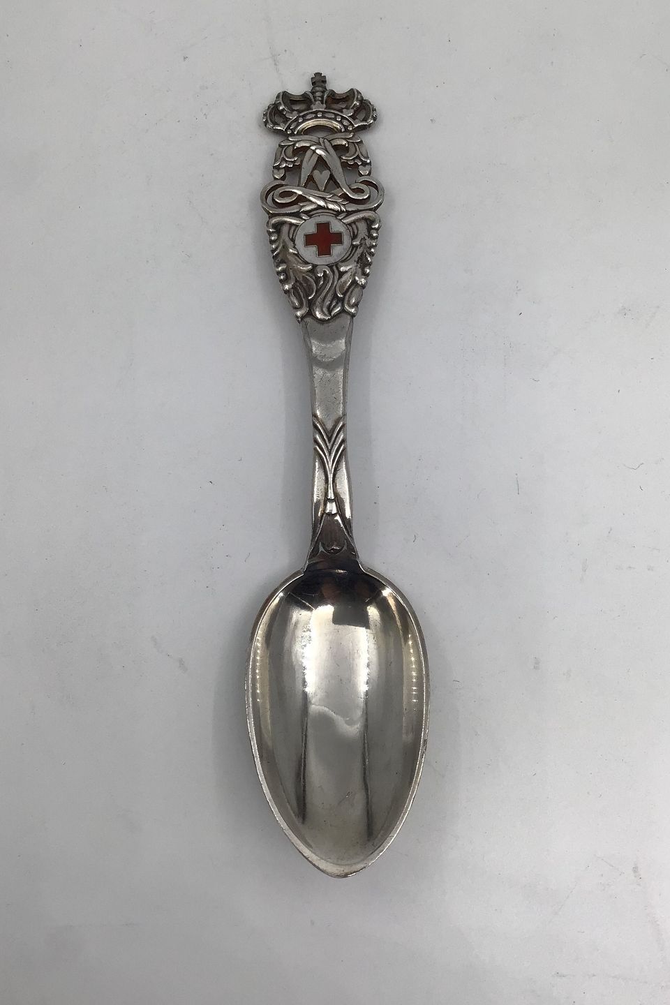 Anton Michelsen Commemorative Spoon Sterling Silver and Enamel, 1908 Queen Louise and Red Cross Measures 15.5 cm (5.90 inch)