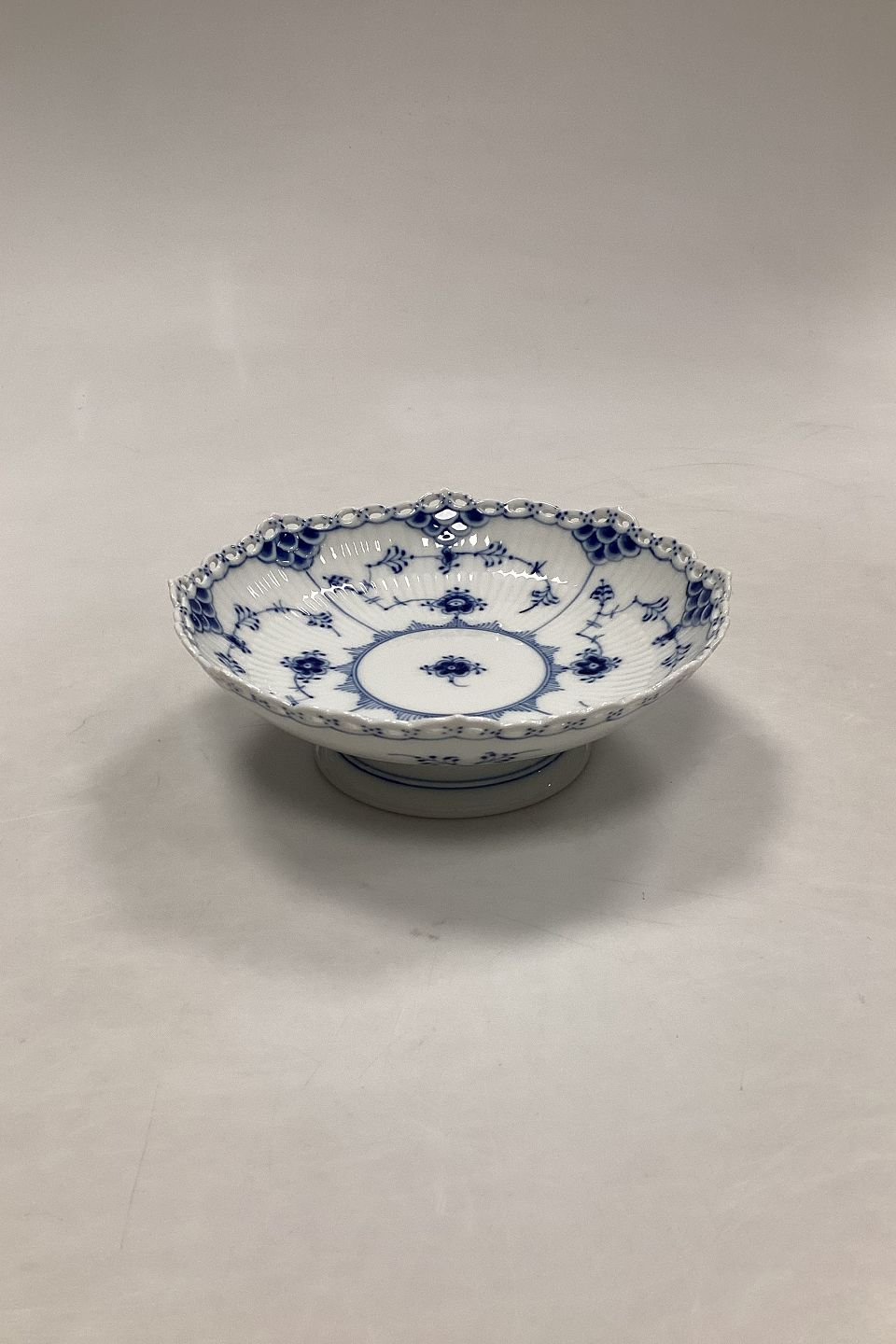 Royal Copenhagen Blue fluted Full Lace Bowl on Foot No 1023. Measures 17.5 cm / 6 57/64 in. 1st Quality. Has a clued tip